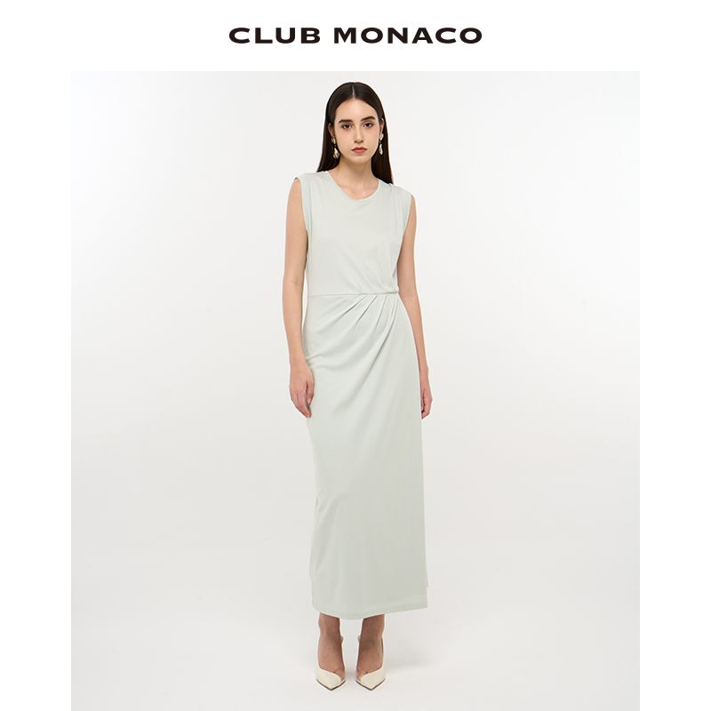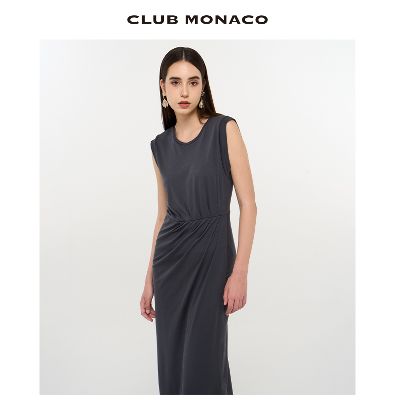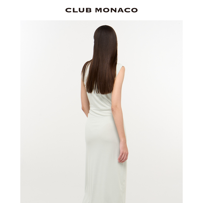 CLUB MONACO女装千金感连衣裙高腰圆领简约气质无袖长款连衣裙