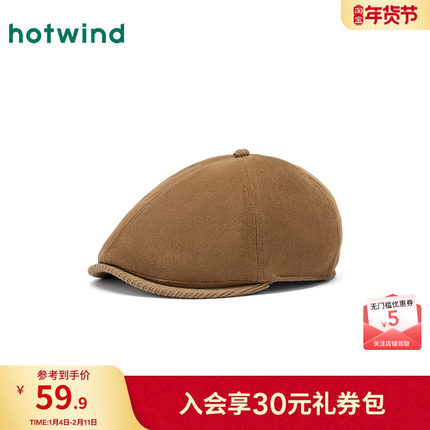 热风女士帽子2025年冬季新款麂皮拼接前进帽复古贝雷帽显脸小帽子