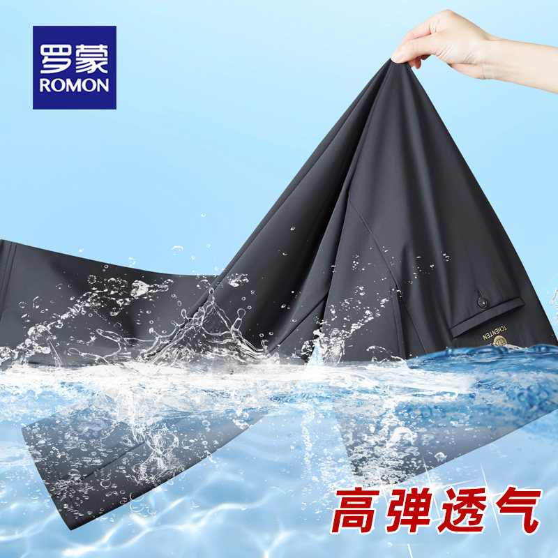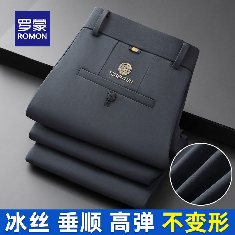 罗蒙休闲裤男2025新款中年爸爸商务休闲免烫西装裤高腰冰丝长裤男