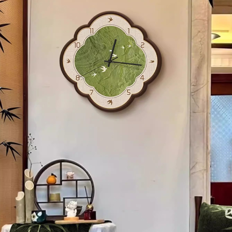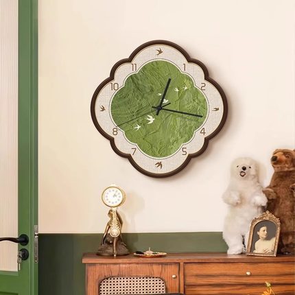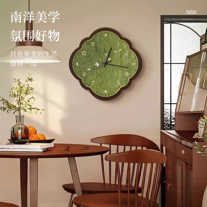 中古风客厅时钟挂墙绿色创意钟表挂钟家用静音餐厅高级感2025新款