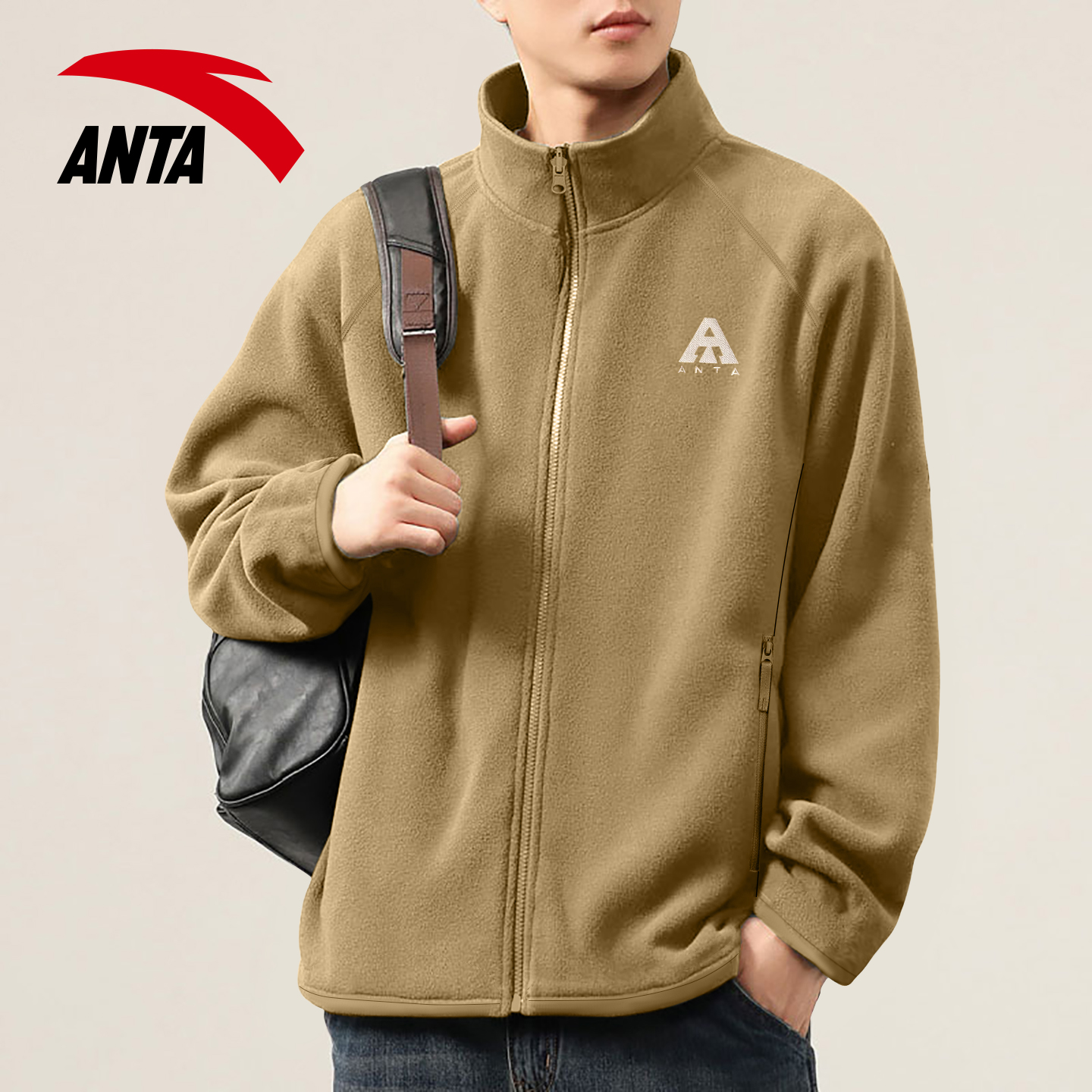 安踏火壳拉链外套男秋冬季加厚保暖双面摇粒绒立领抓绒衣内胆夹克