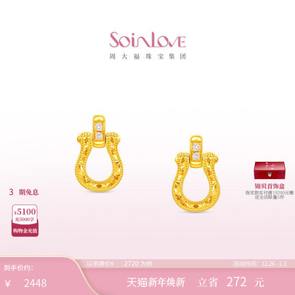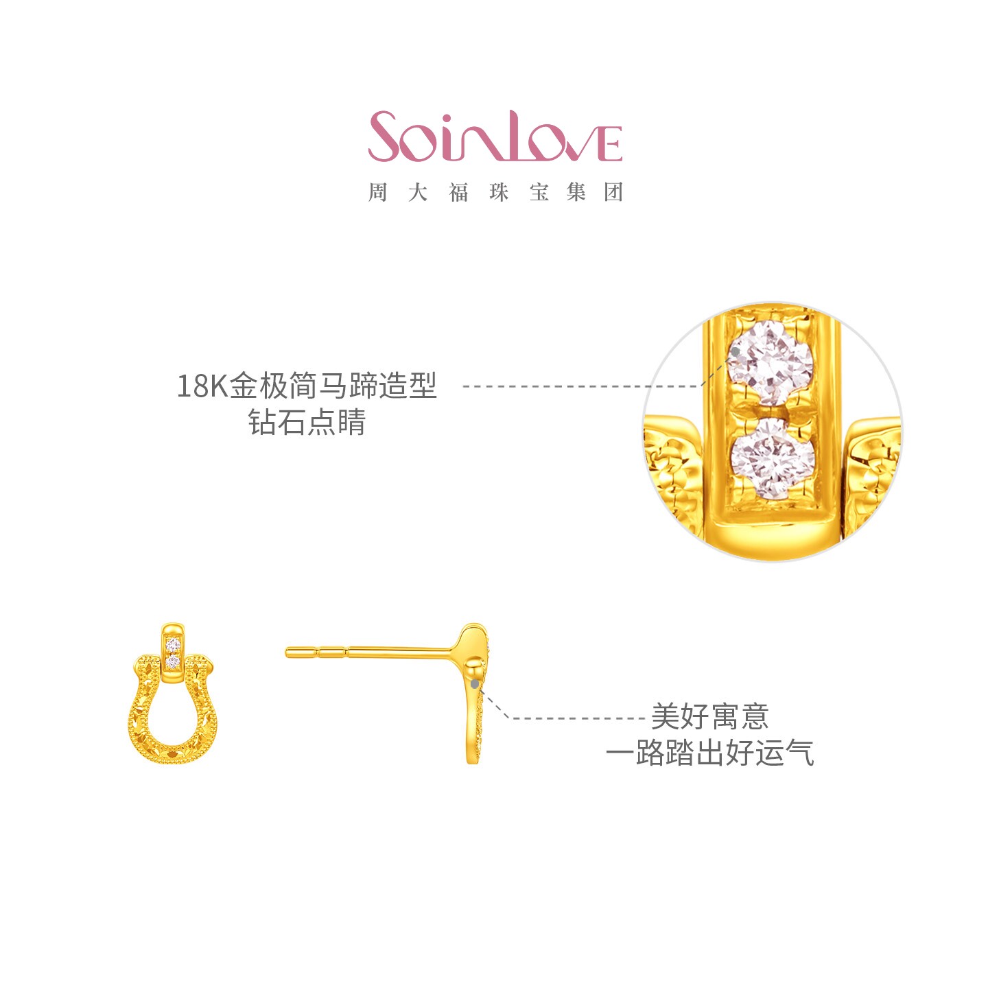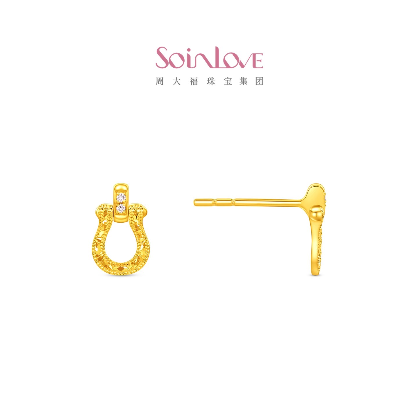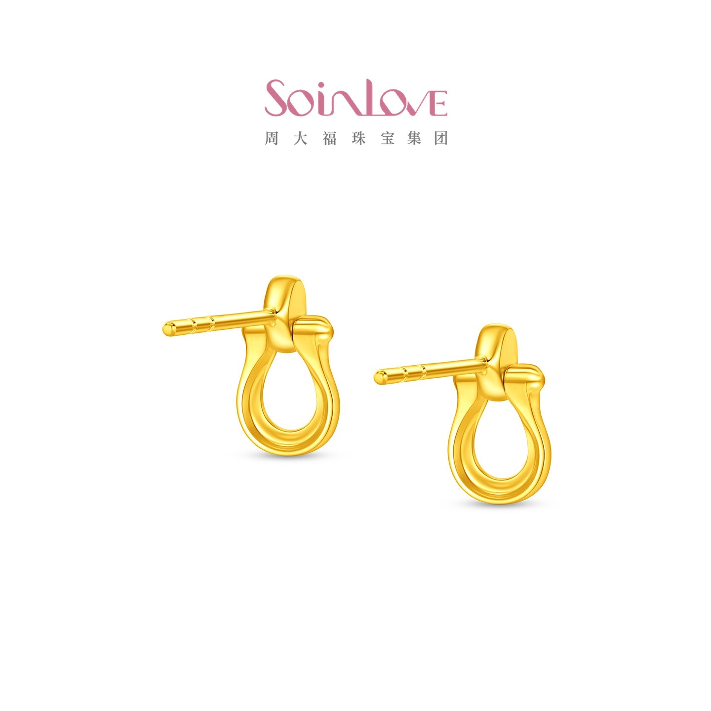 周大福SOINLOVE极简系列驭风马蹄18K金粉色调钻石耳钉耳饰