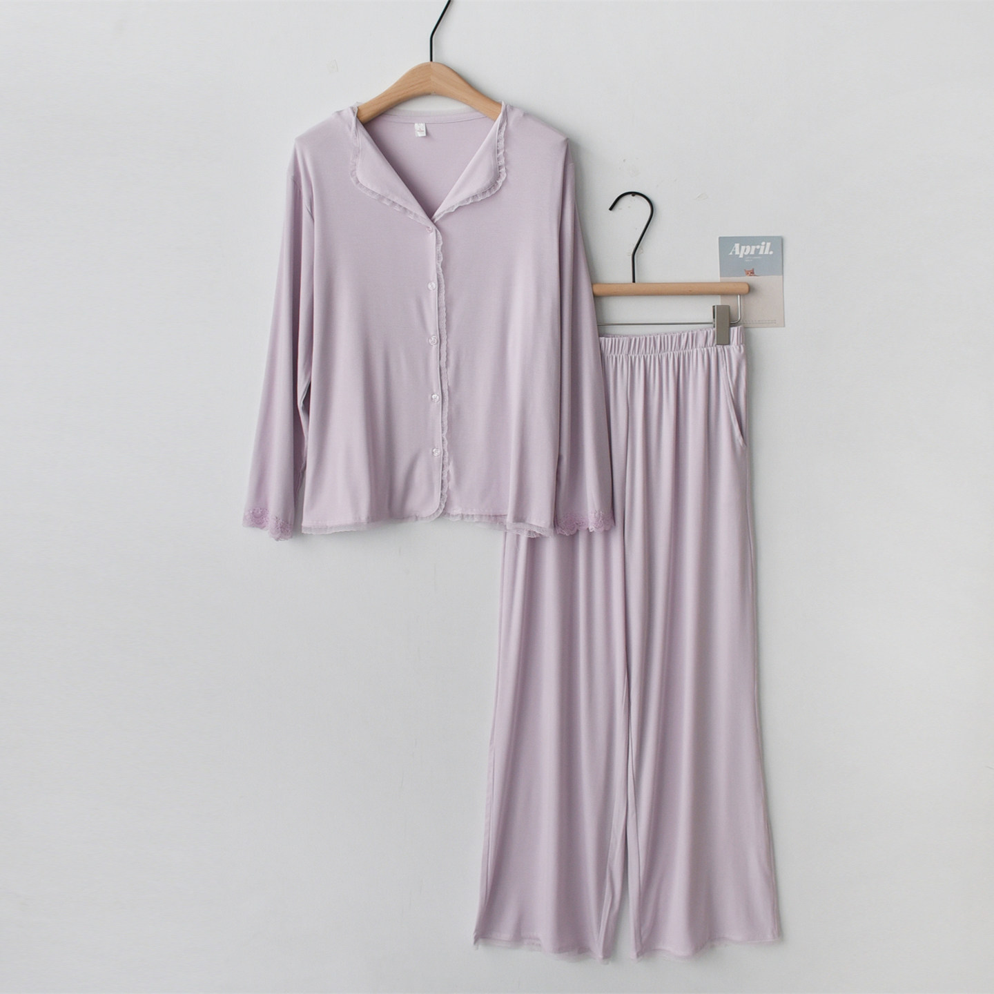 蕾丝花边睡衣女款春夏季莱赛尔天丝优可丝薄款长袖长裤家居服套装