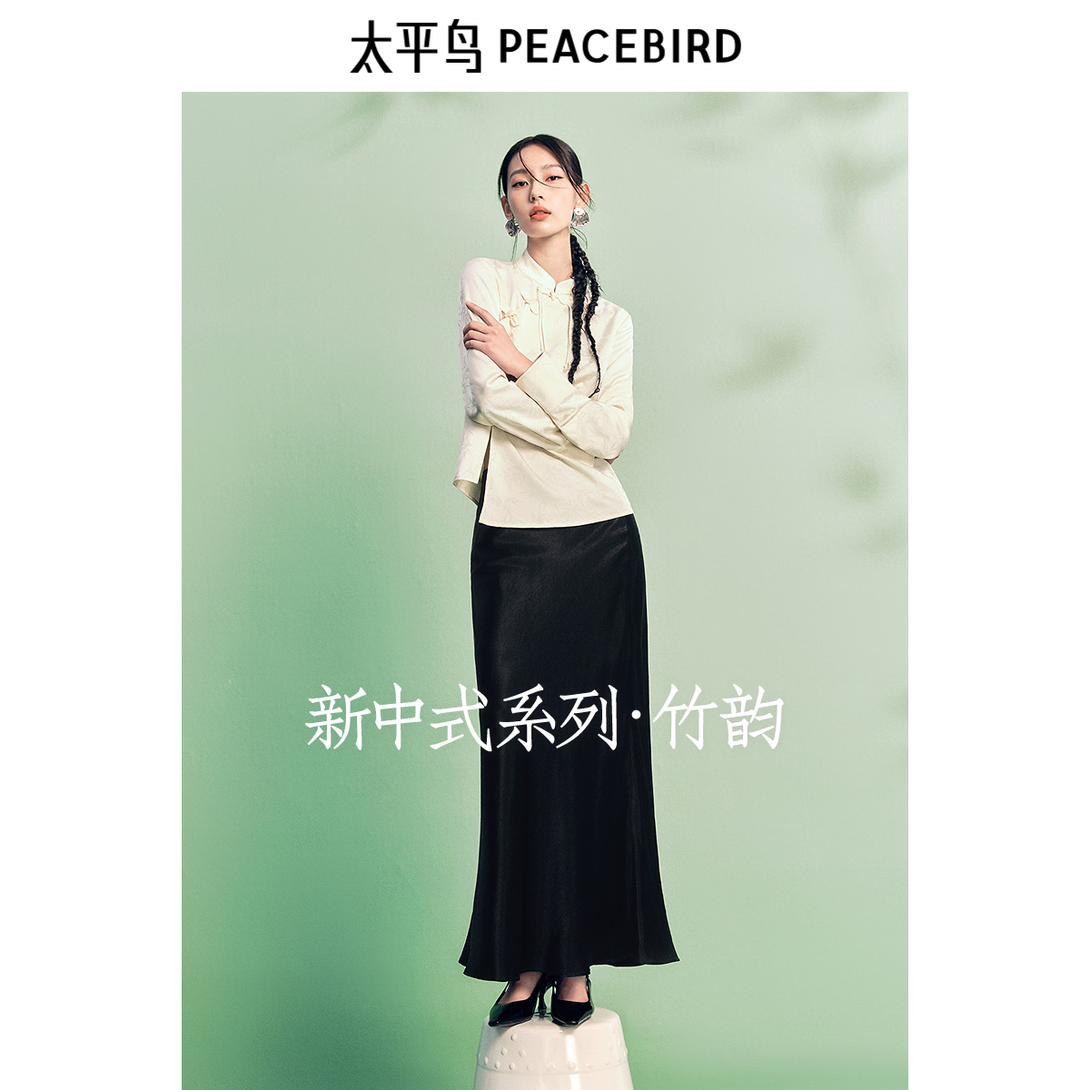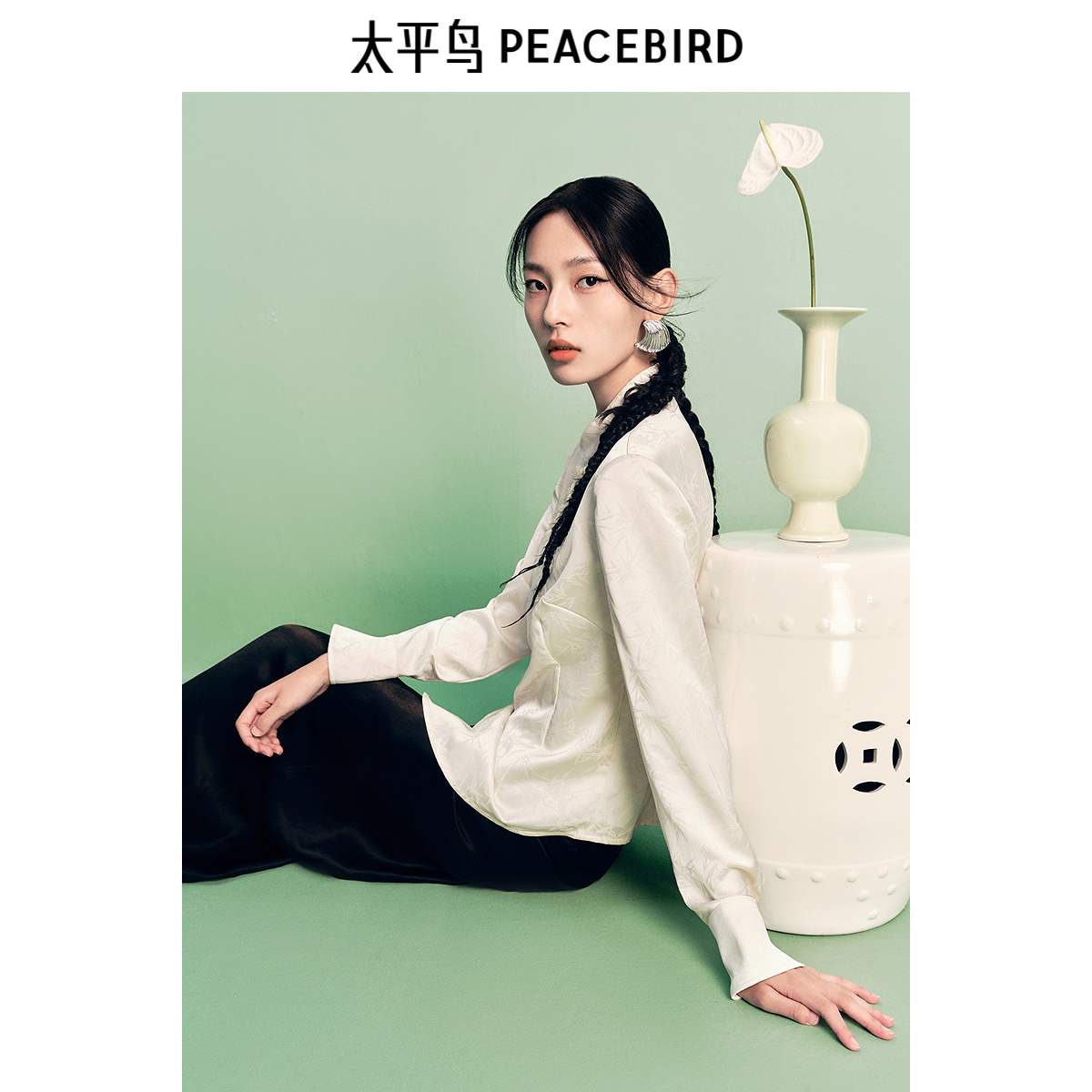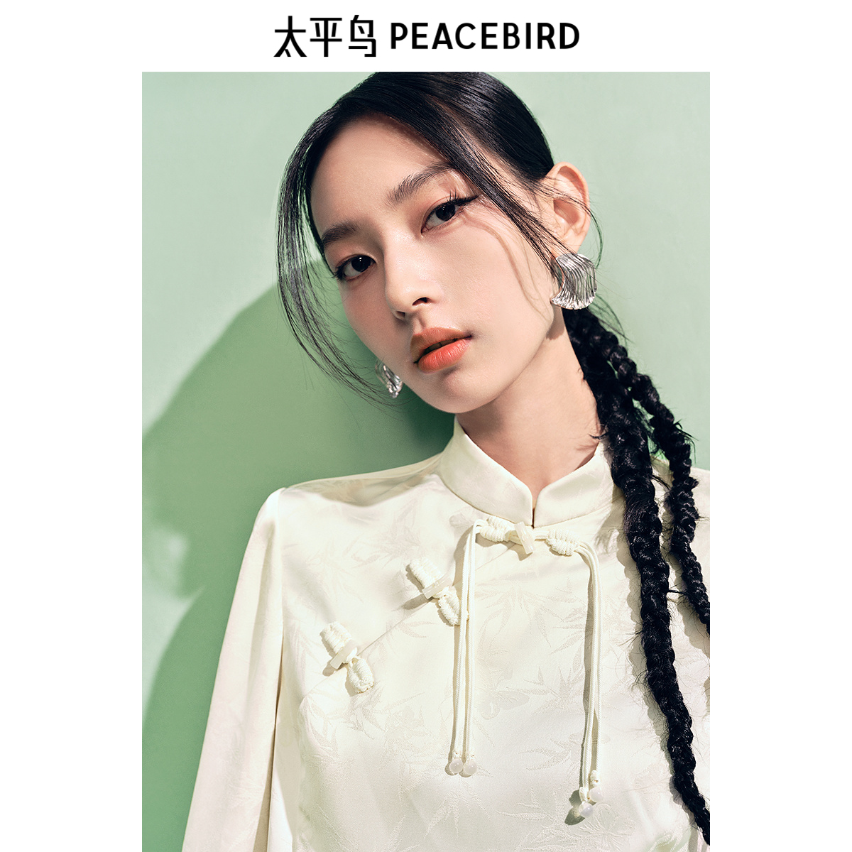 太平鸟新中式旗袍式盘扣上衣24秋新款暗纹提花缎面上装A7CDE3410