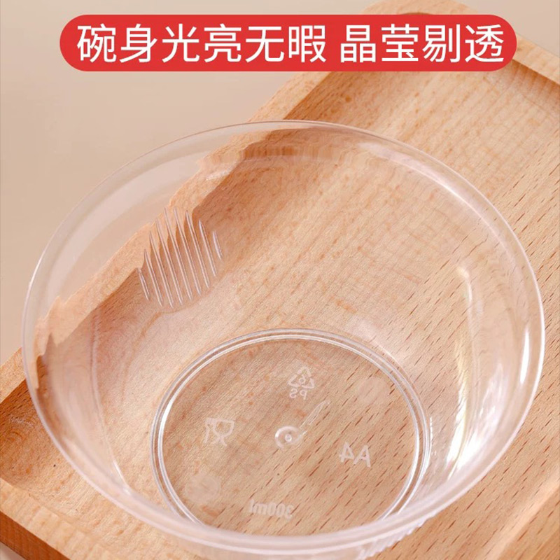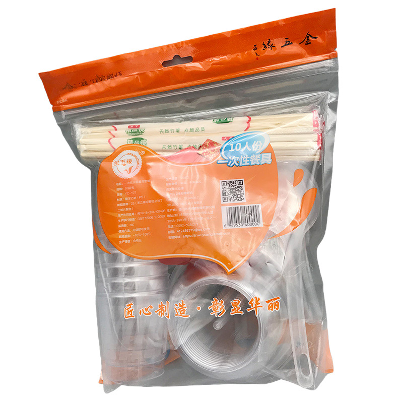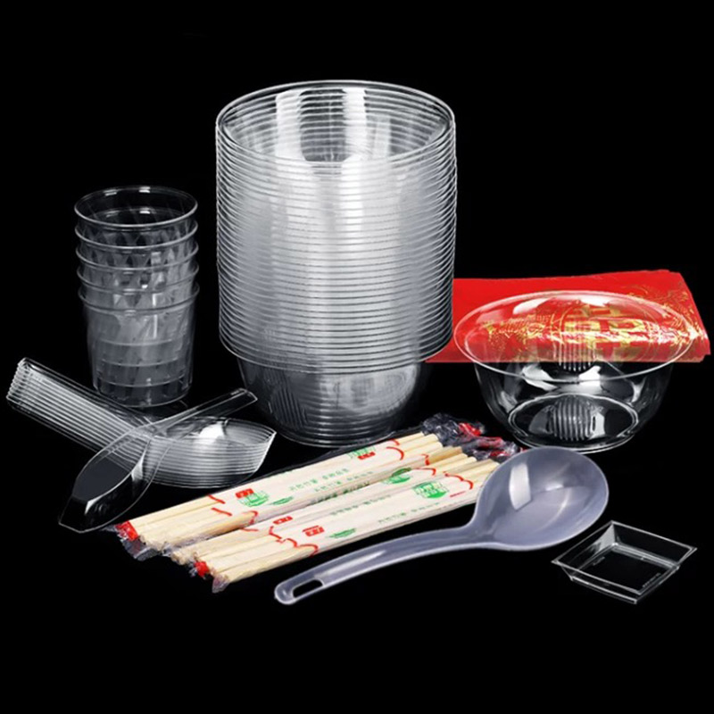一次性餐具套装10人份金五缘野炊家用圆形透明水晶碗汤勺筷子杯子