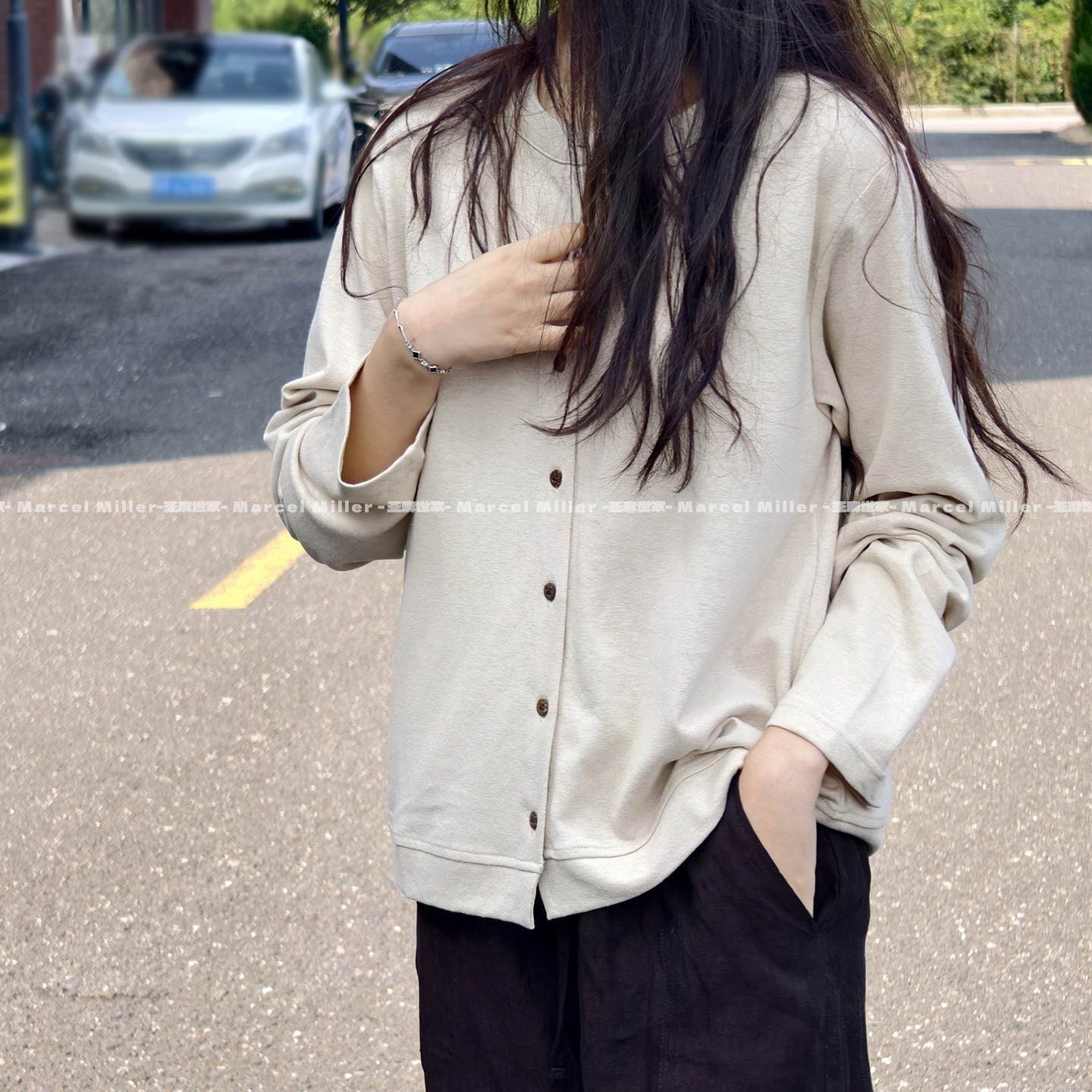 汉麻棉加厚圆领开衫软糯亲肤透气秋冬百搭简约慵懒风外穿内搭外套