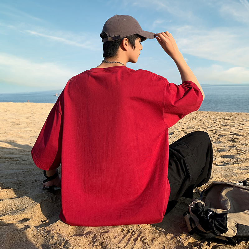 美式cleanfit短袖t恤男夏季潮牌宽松大码纯色简约百搭圆领打底衫