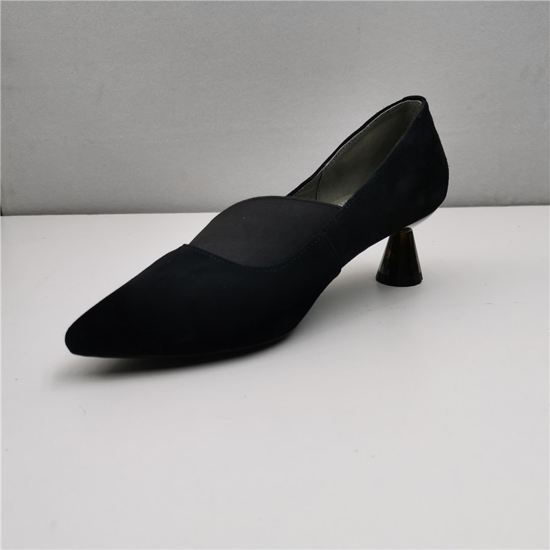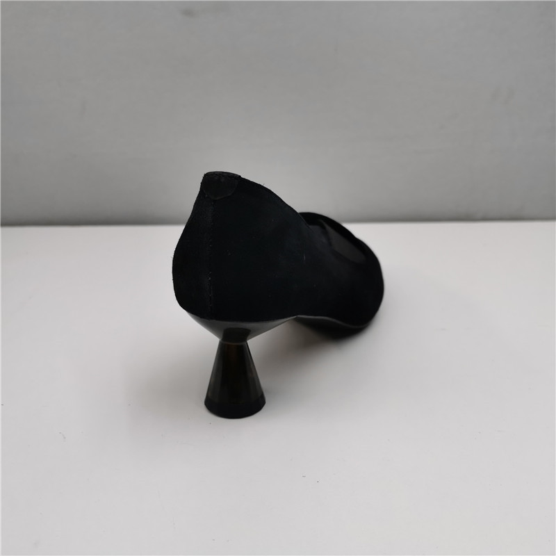 品牌撤柜真皮鞋子女新款2023爆款秋羊反绒尖头中跟显瘦气质单鞋女