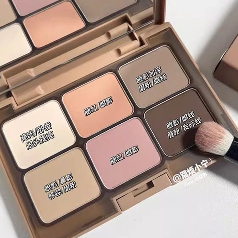 everbab六色眼影盘哑光大地色高光修容腮红小众一体盘学生平价女