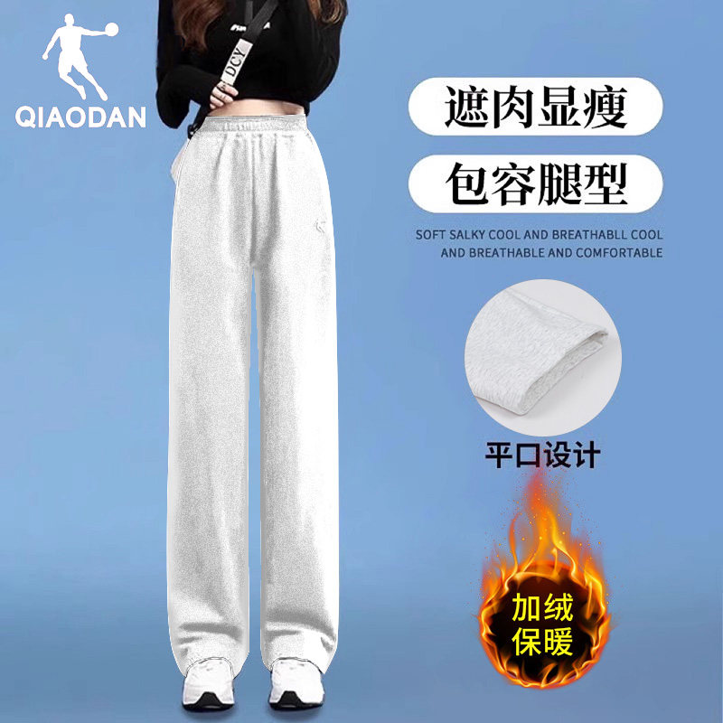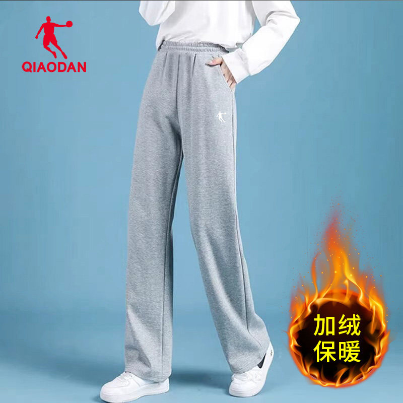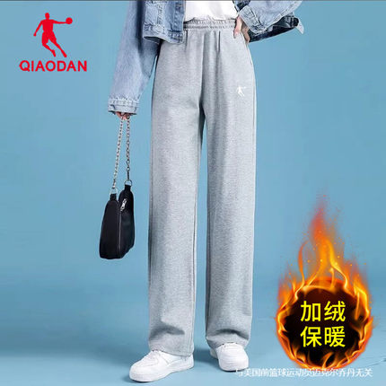 乔丹加绒长裤女棉裤2026春季新款灰色保暖直筒裤子官方正品运动裤