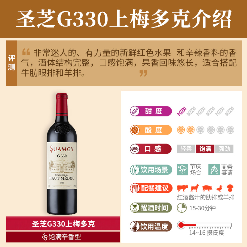 圣芝G330上梅多克进口红酒整箱官方正品旗舰店法国葡萄酒送礼干红