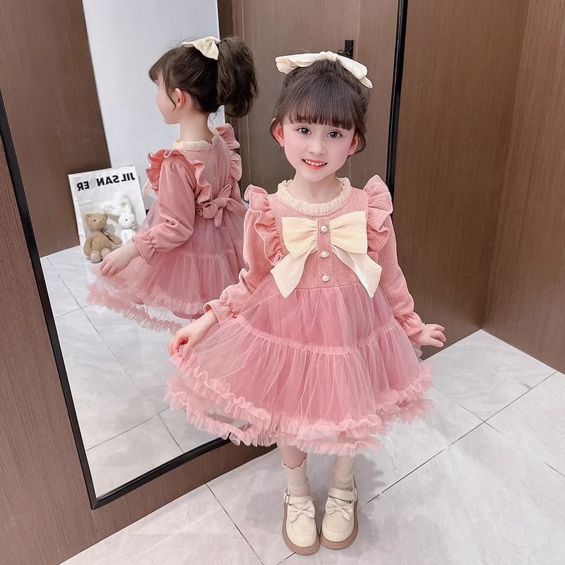 女童连衣裙春秋款2024新款洋气女宝宝秋季儿童装公主蓬蓬裙子冬天