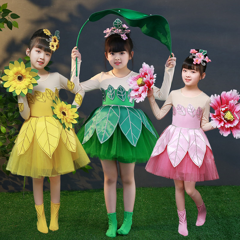 小草演出服锄禾表演服雨中趣树叶裙鱼戏莲叶间春晓花朵荷花绿纱裙