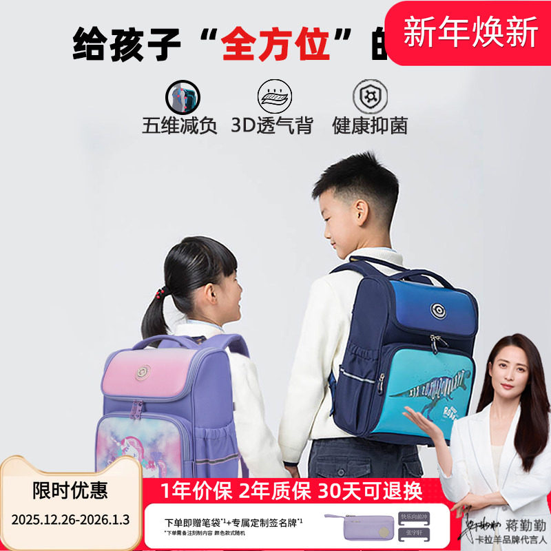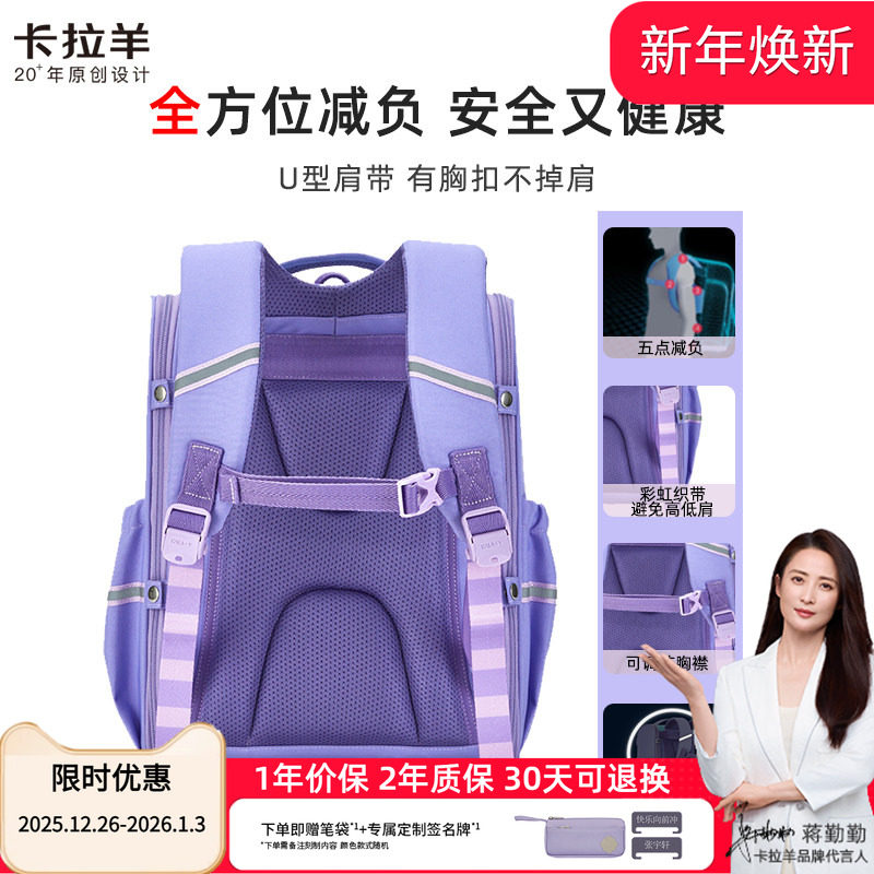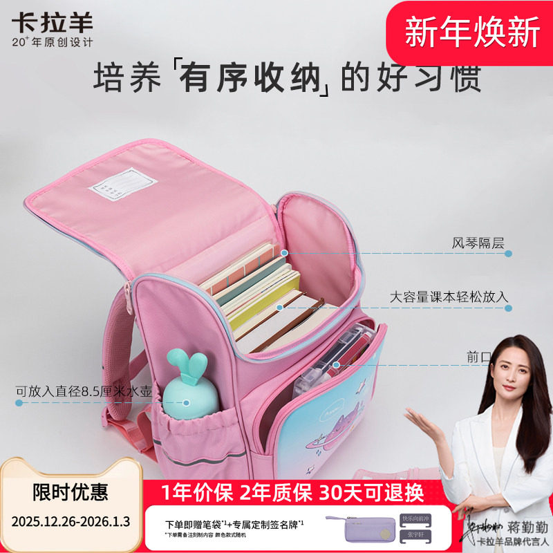 卡拉羊小学生书包1-4年级男女童减负护脊大容量双肩背包