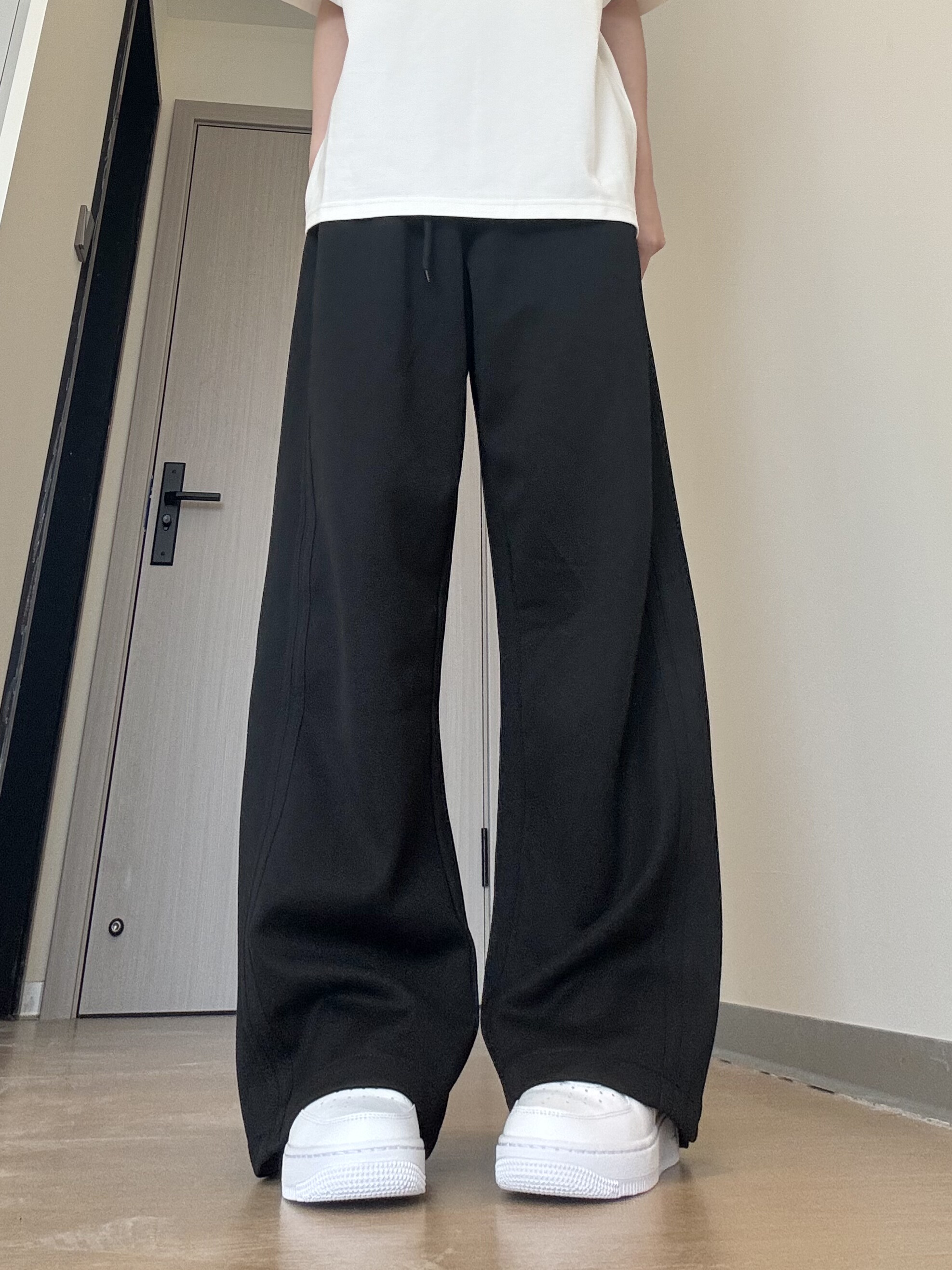 美式重磅条纹运动卫裤男秋冬潮牌宽松直筒百搭垂感阔腿休闲长裤子
