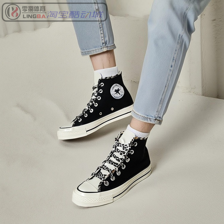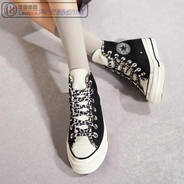 匡威女子黑白豹纹拼接帆布鞋休闲