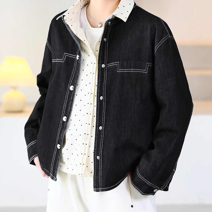 铜扣记明线深色牛仔棒球服女圆领休闲百搭宽松显瘦韩版长袖短外套