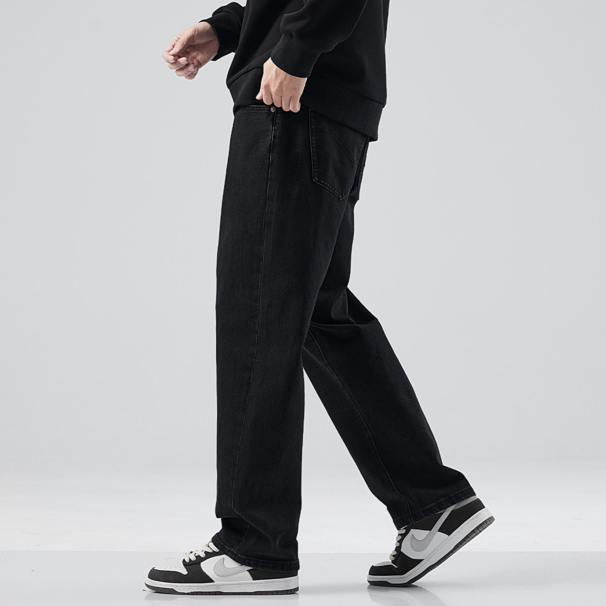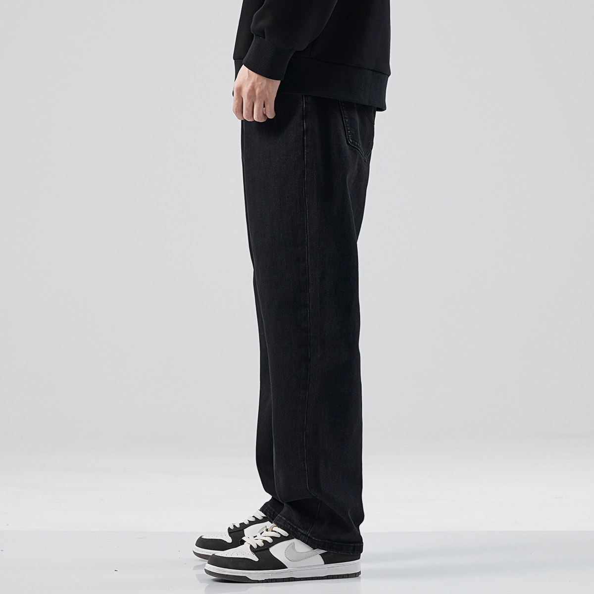 hansca黑色直筒牛仔裤男2025春秋季加绒弹力美式街头宽松百搭长裤