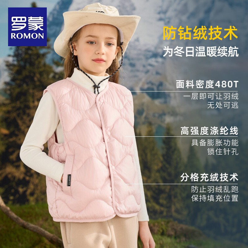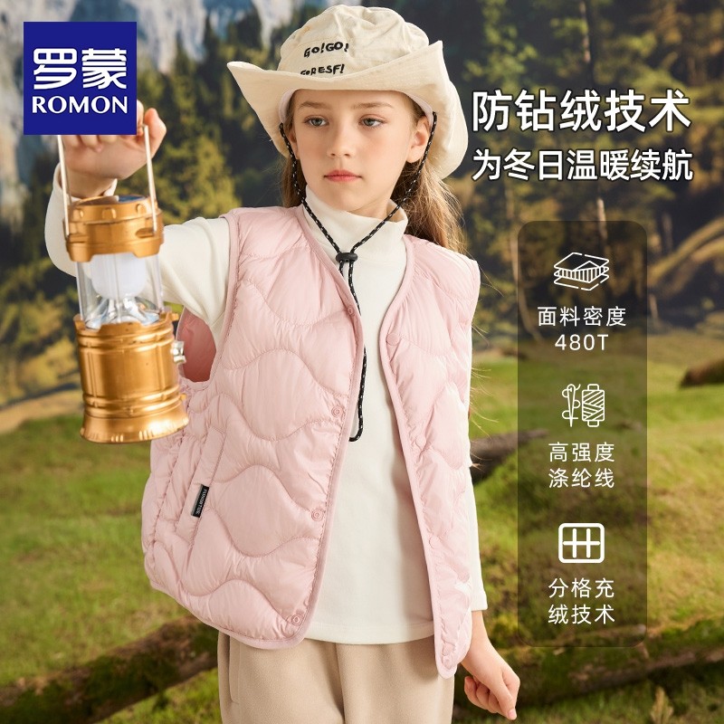 罗蒙儿童羽绒马甲女童宝宝内穿保暖轻薄背心2025新款外穿冬装坎肩