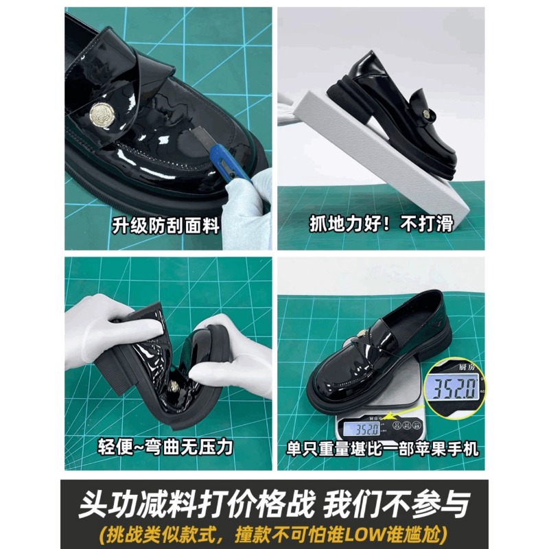 真皮版!小金币厚底乐福鞋女2024新款英伦懒人粗跟休闲小皮鞋单鞋