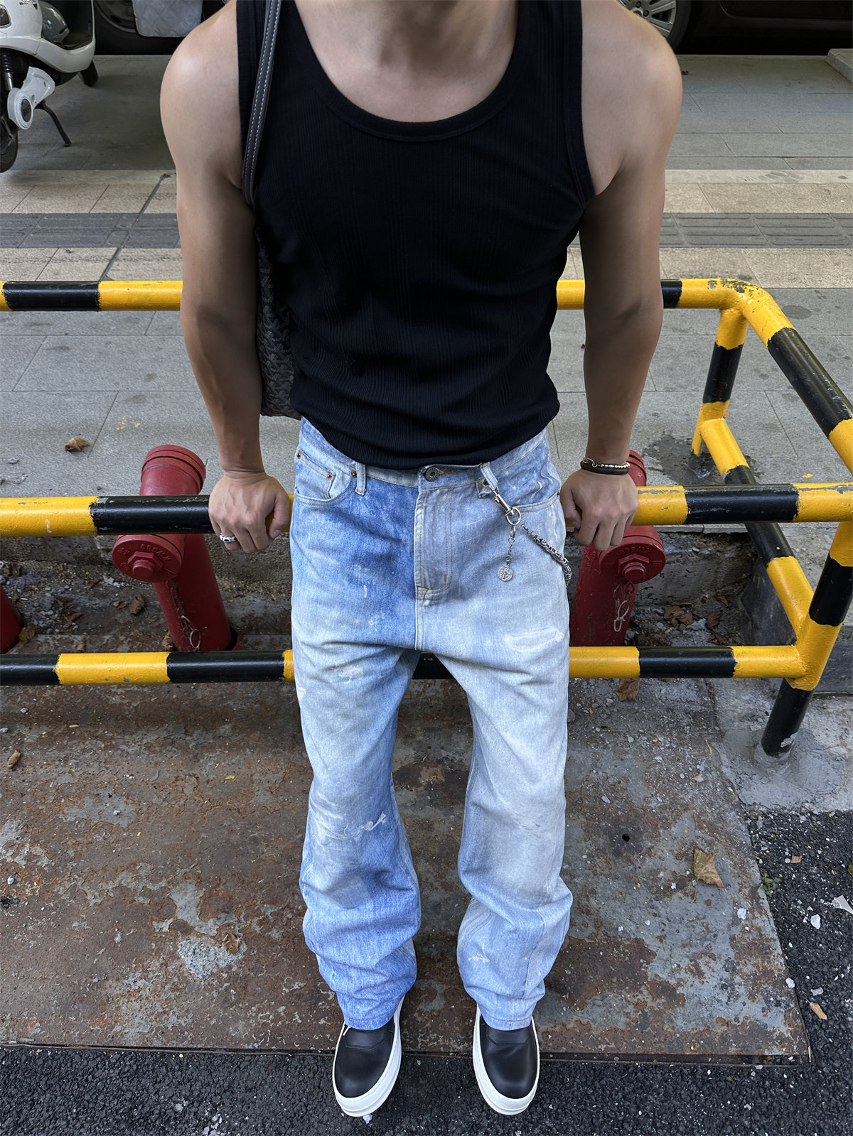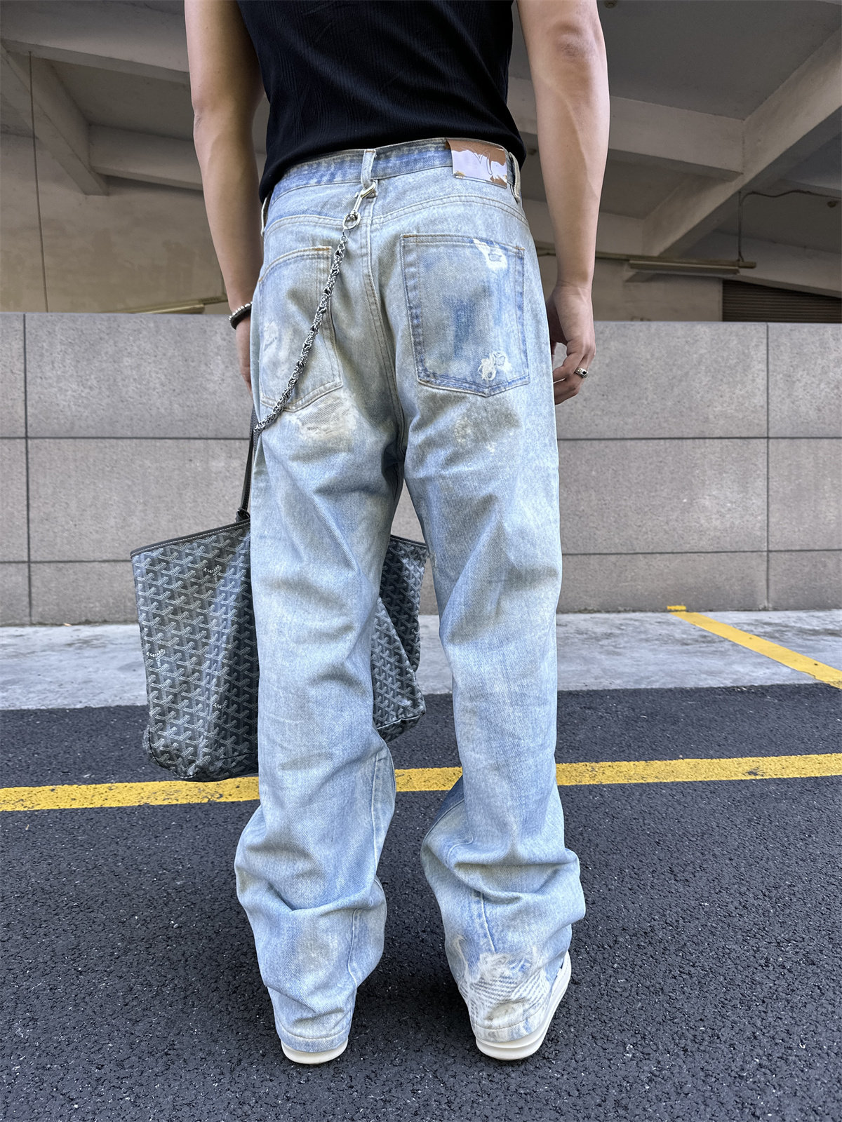 FODH方哥◆1.0超有范儿 百搭宽松浅蓝色数码印花水洗做旧牛仔裤