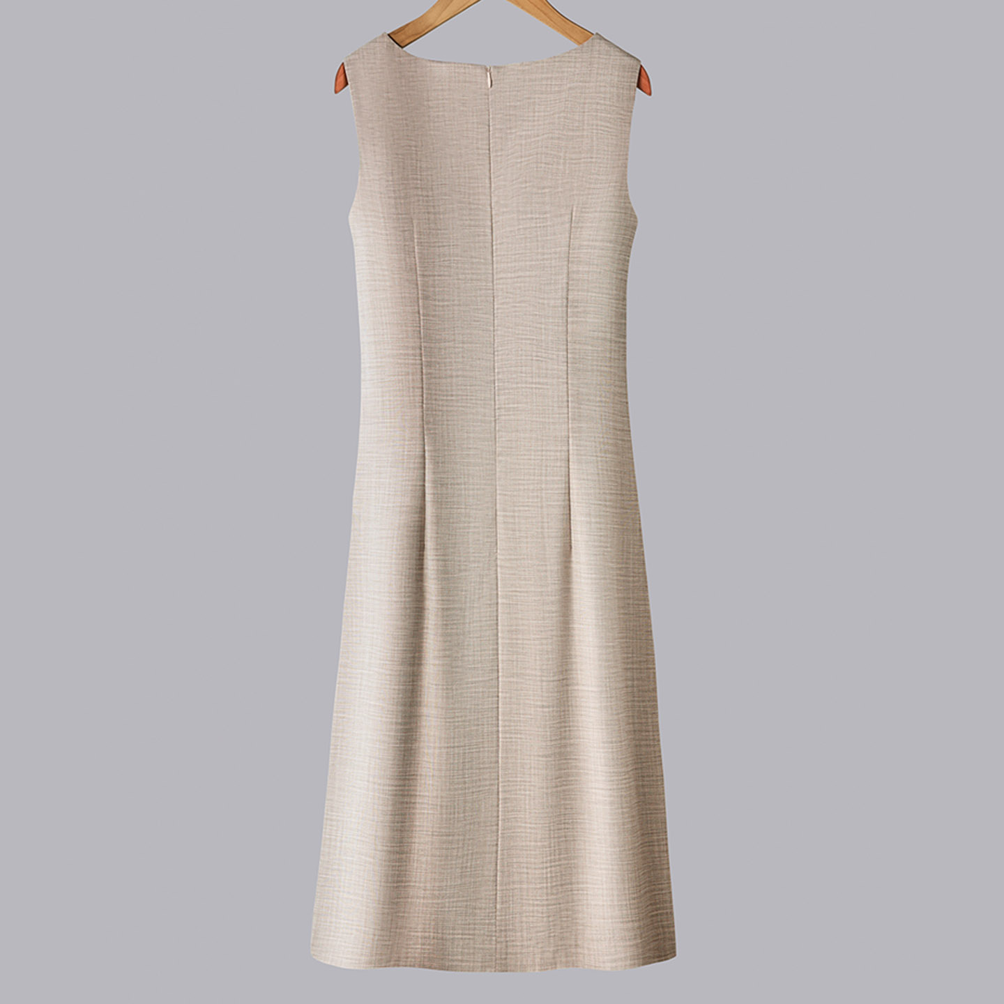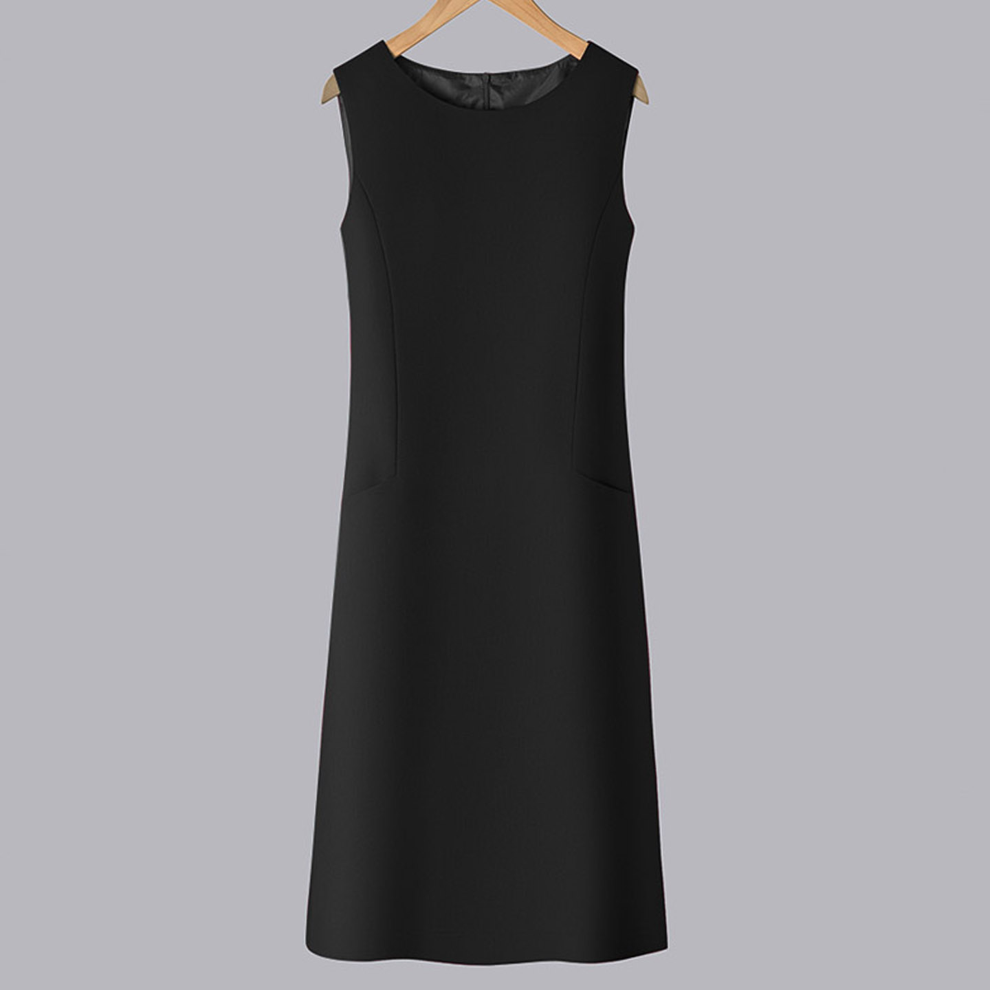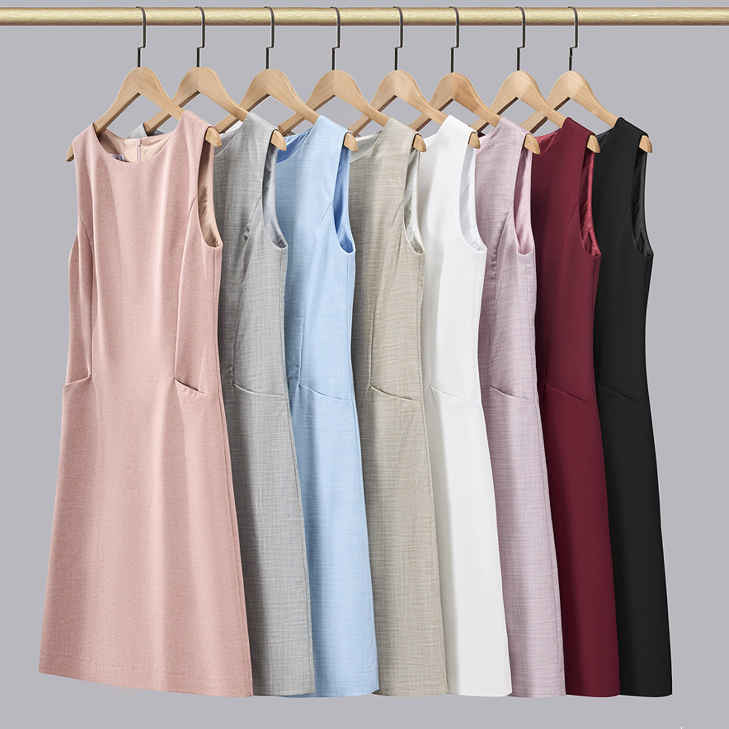 酒红色无袖连衣裙高腰包臀裙显瘦口袋背心裙百搭通勤工作西装裙