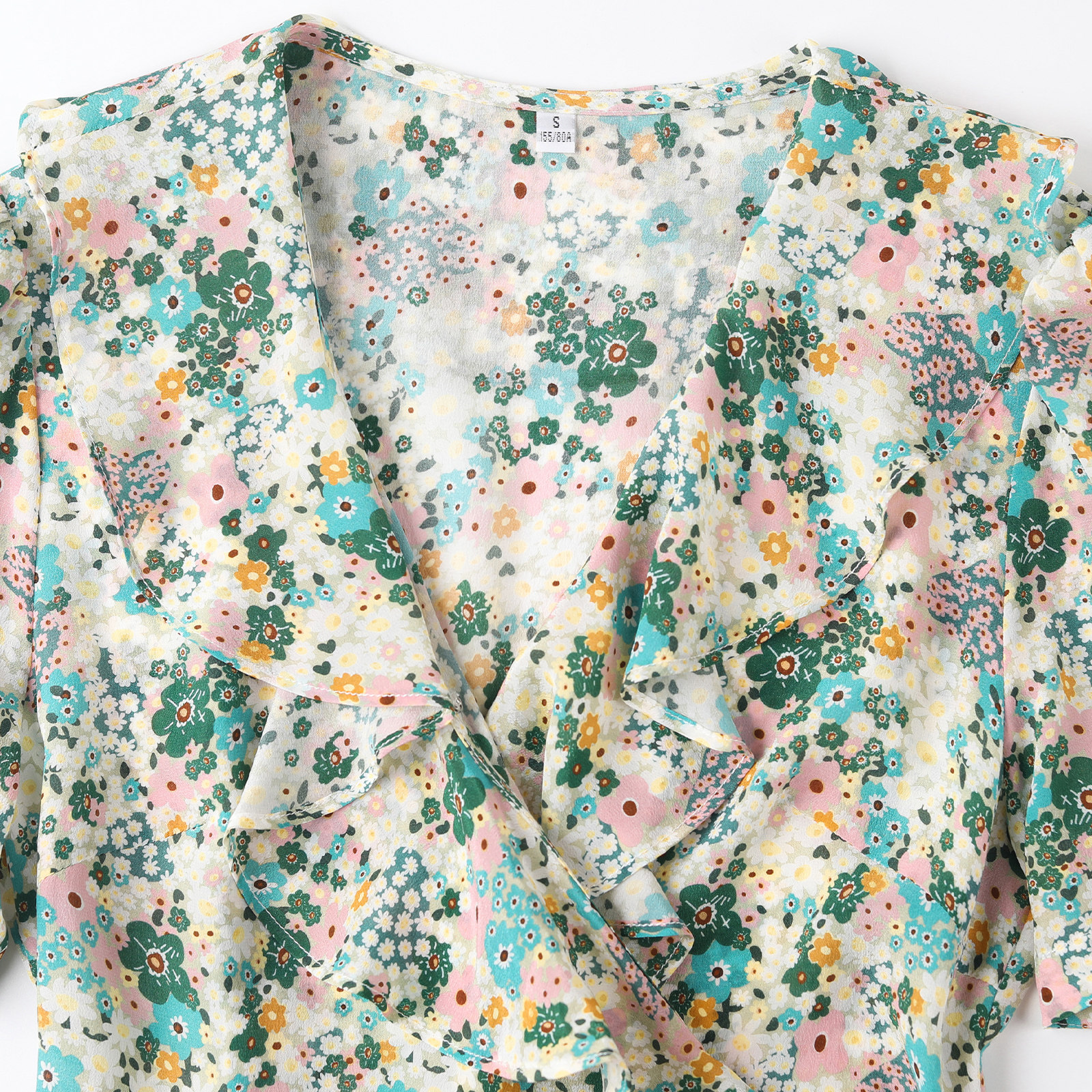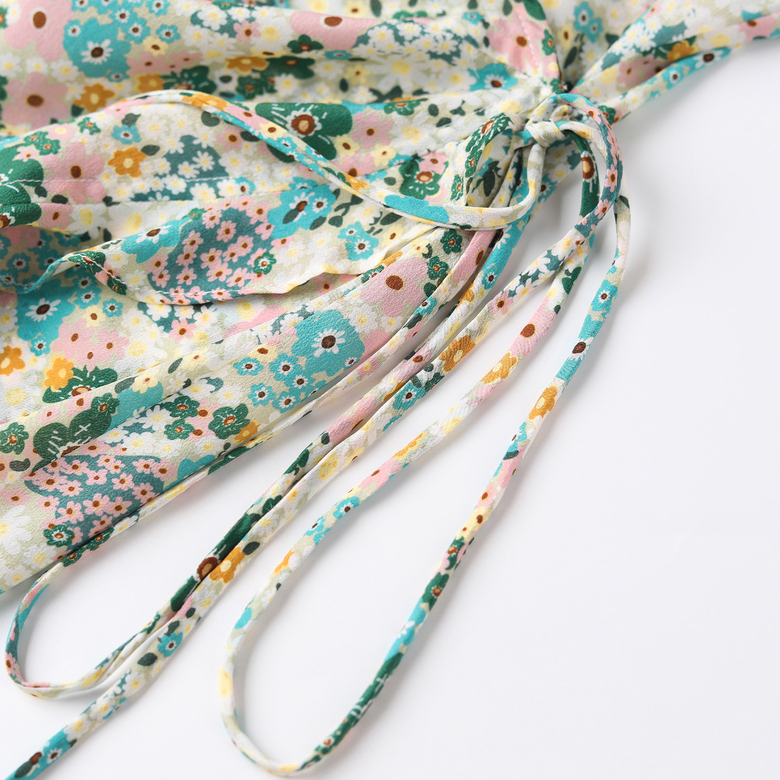 wanatry法式围裹真丝碎花连衣裙