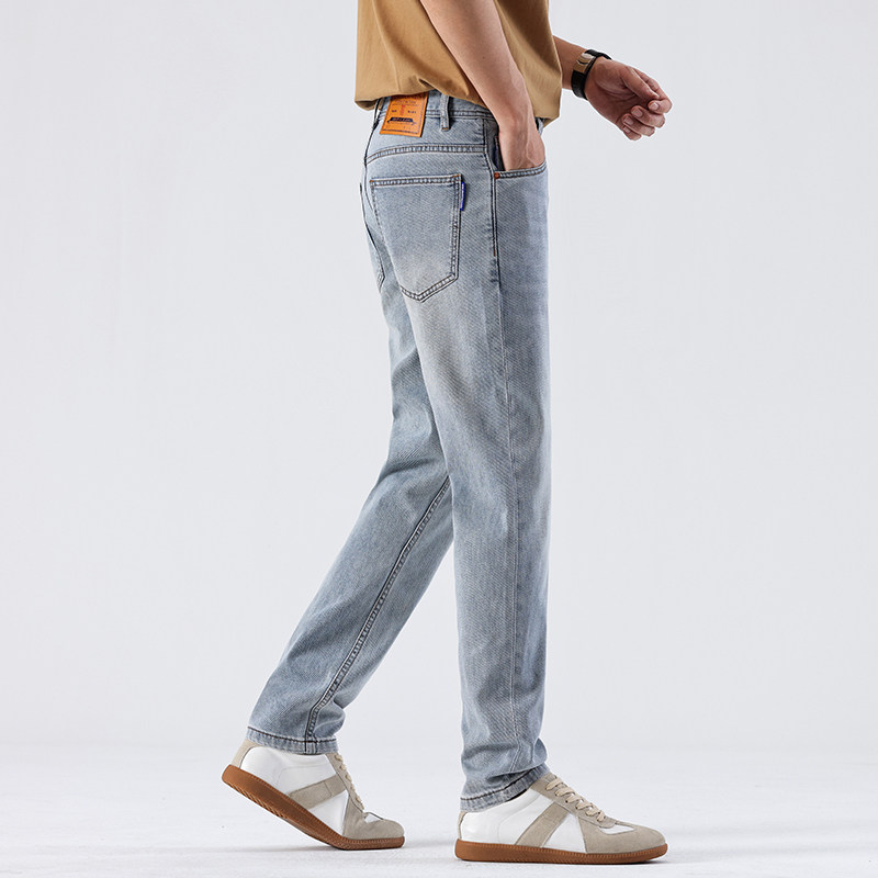 新款高端品质简约百搭浅色修身小直筒牛仔裤男生年夏季超薄休闲