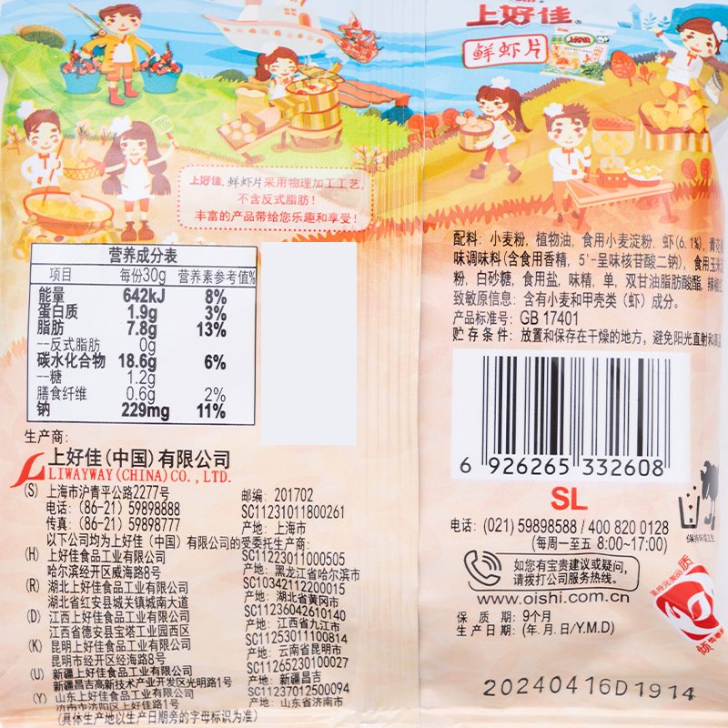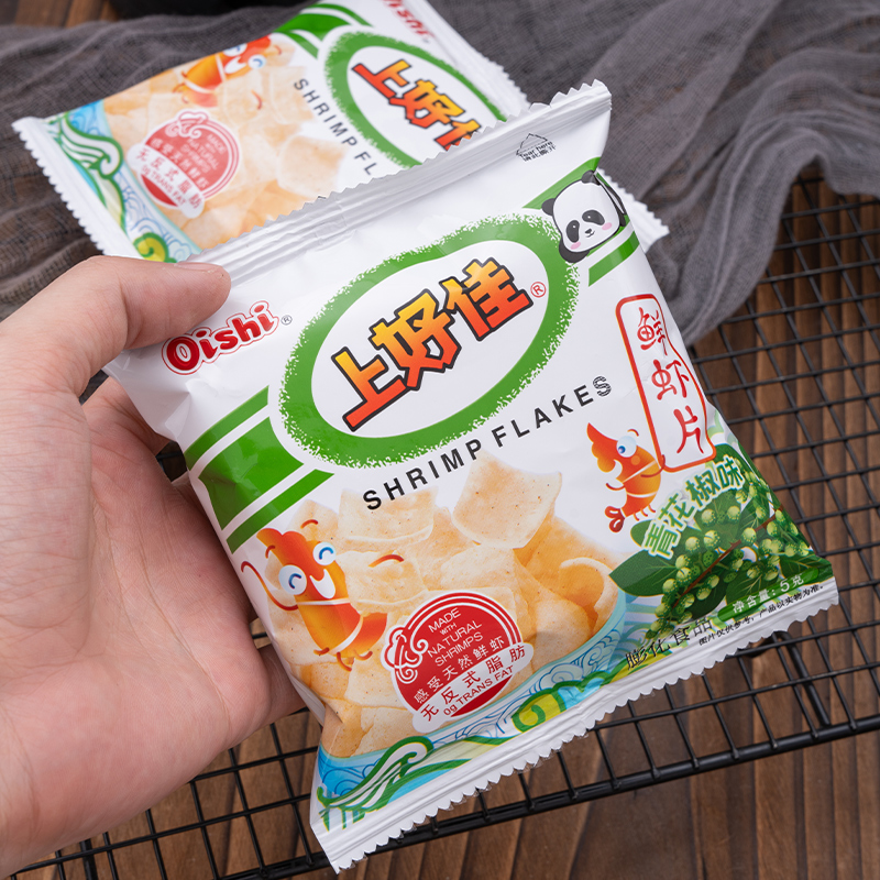 上好佳鲜虾片青花椒味薯片小包装追剧办公室小吃零食儿童大礼包