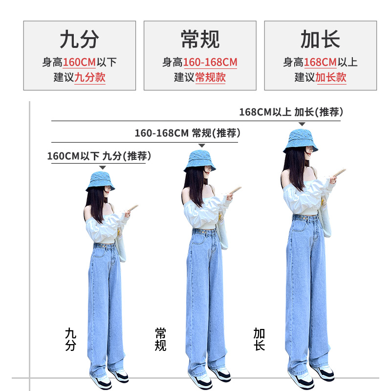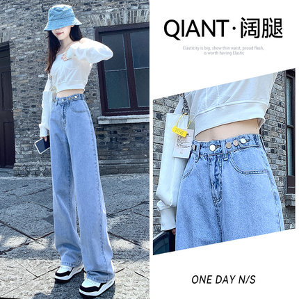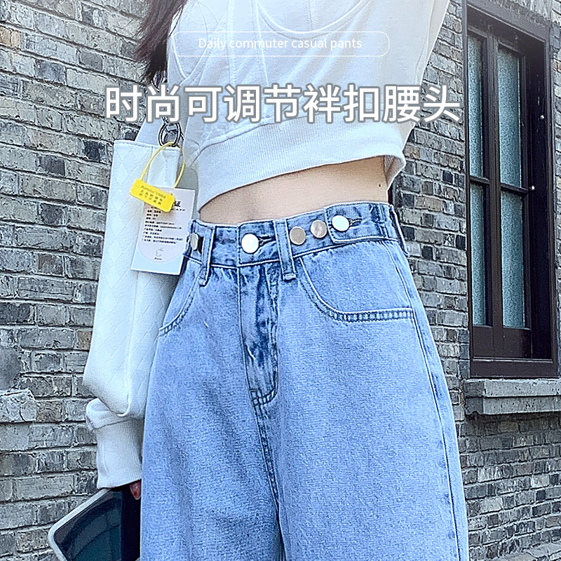 高腰排扣窄版阔腿显瘦直筒牛仔裤