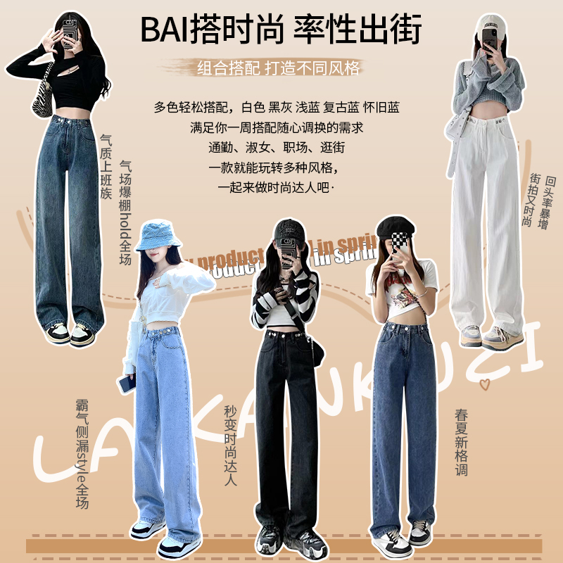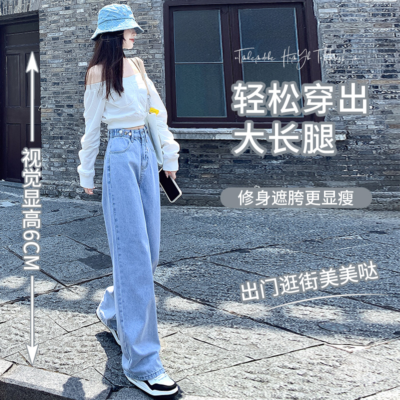 高腰排扣窄版阔腿牛仔裤女2025春秋新款韩版时尚复古百搭直筒长裤