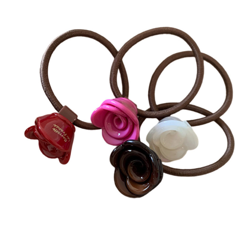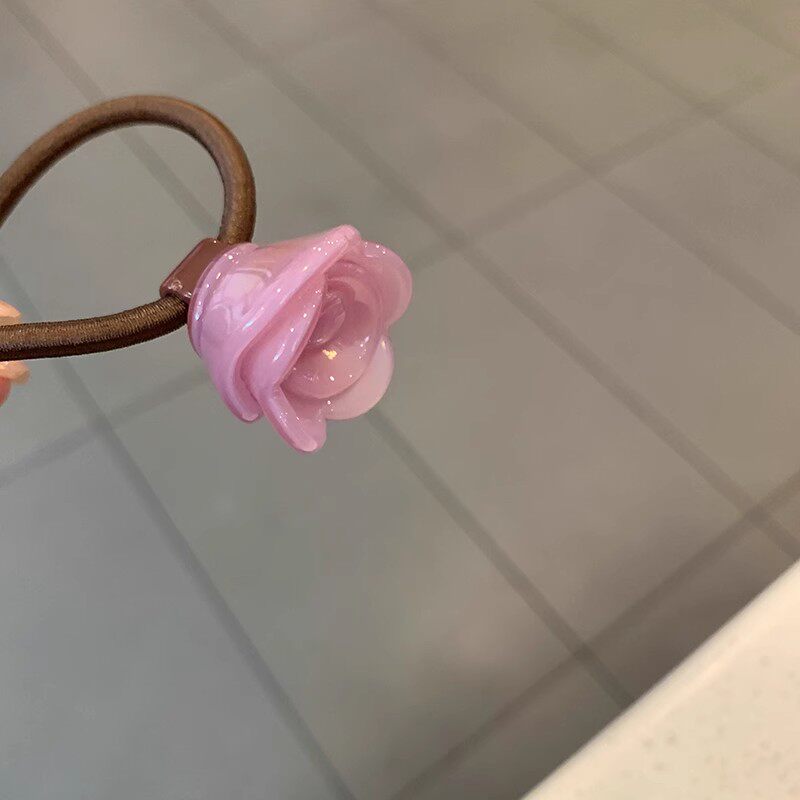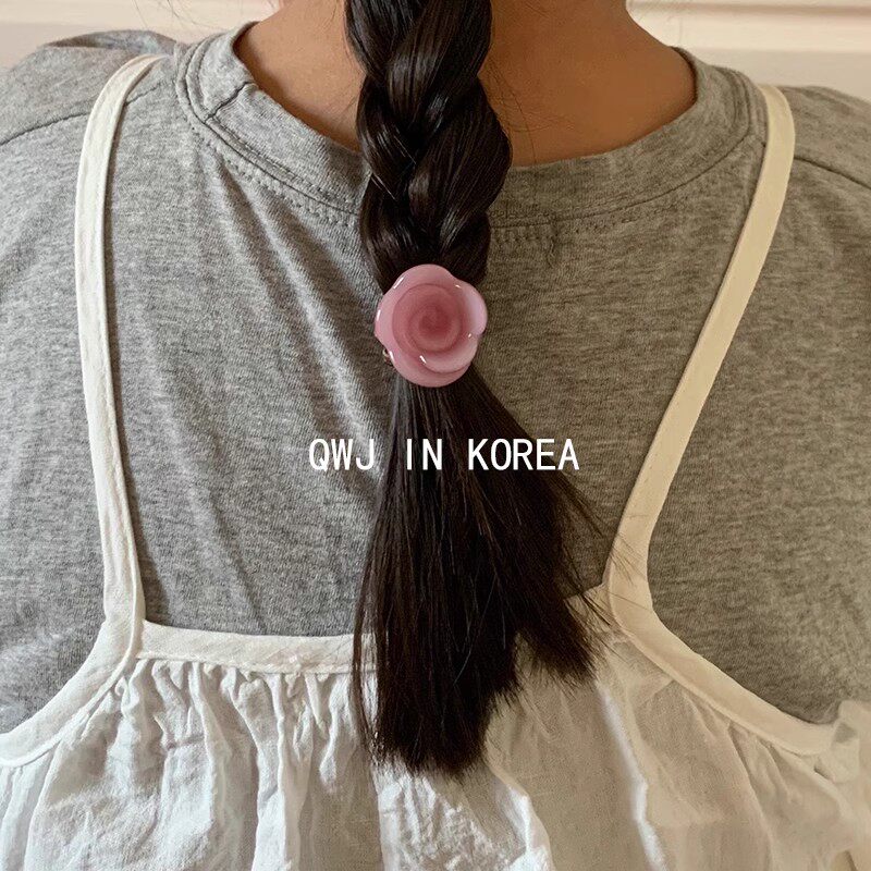 韩国进口France金标温柔粉紫白色玫瑰花发圈复古法式气质发绳头绳