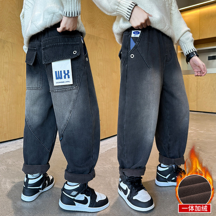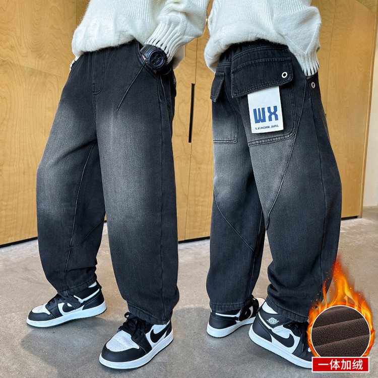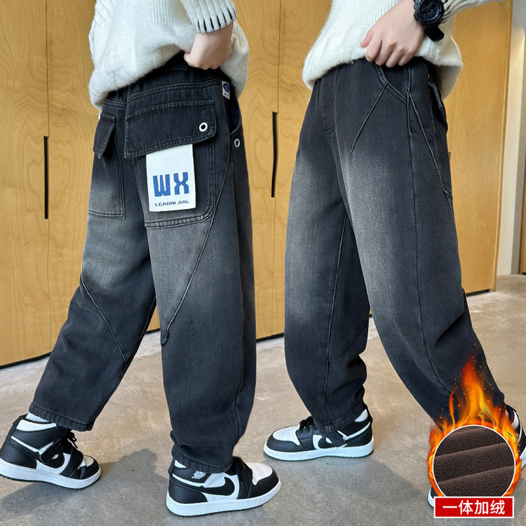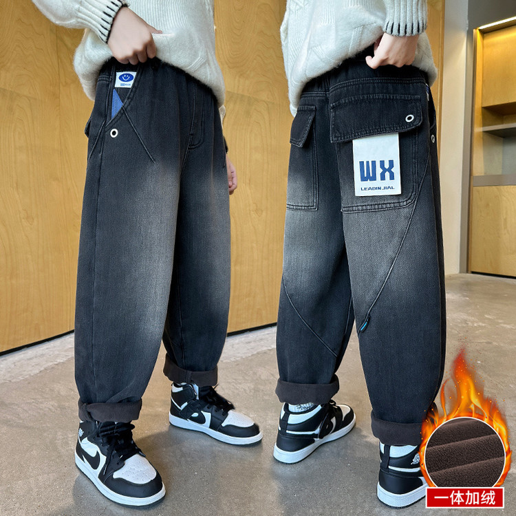 儿童装男童加绒裤子冬装2025新款加厚男孩中大童秋冬款牛仔冬季潮