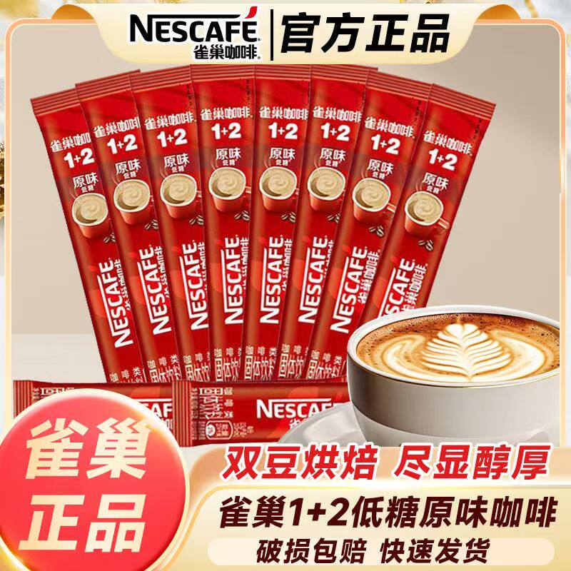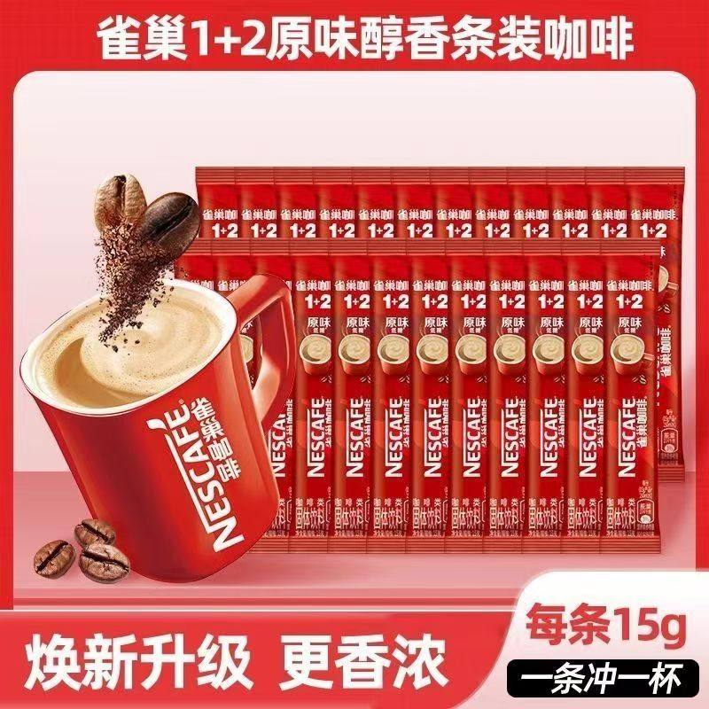 雀巢原味咖啡100条装1+2速溶特浓冲泡三合一防困提神学生咖啡粉