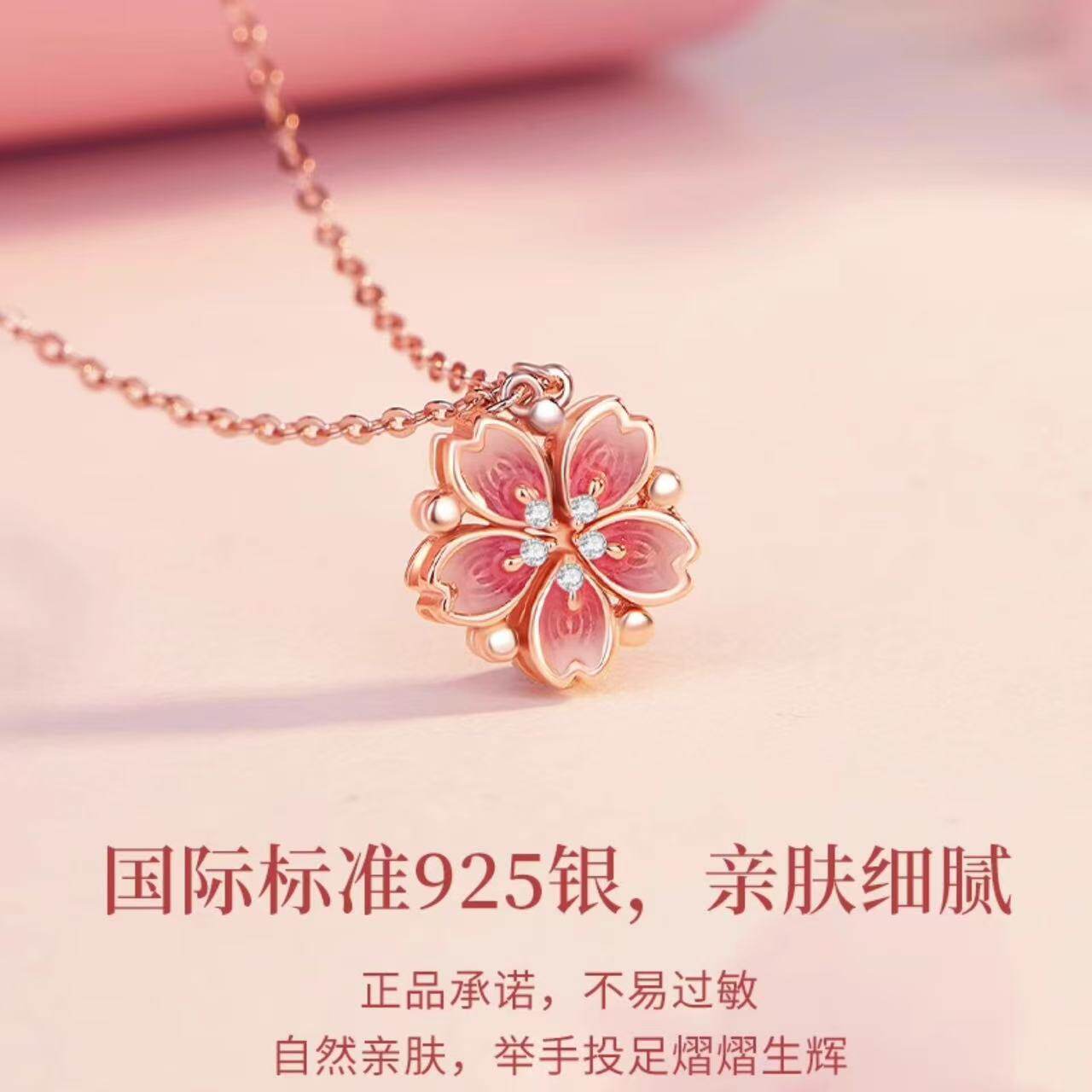 S925纯银项链女新款桃花项链轻奢小众高级生日礼物送女友P