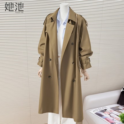 她池中长款风衣2026春装新款女装时尚翻领双排扣气质英伦风外套