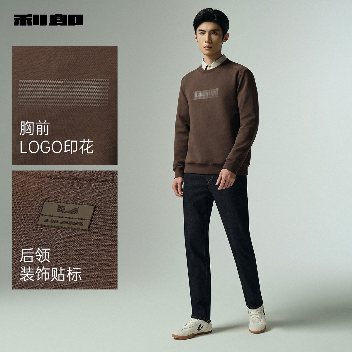 利郎官方棉混纺秋季宽松休闲卫衣