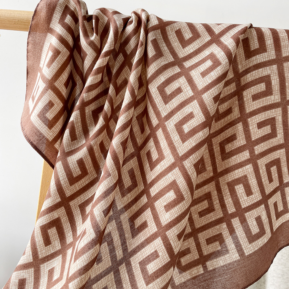 跨境披肩外搭回纹印花方巾丝巾女士春秋人字纹百搭领巾围巾