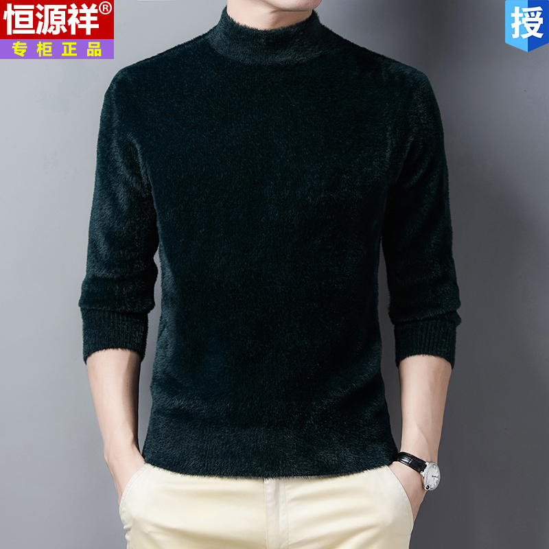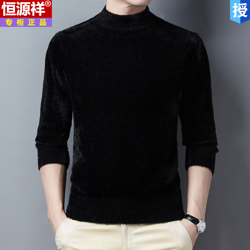 恒源祥貂绒毛衣男加厚款冬季水貂毛半高领中年羊绒高领加绒打底衫