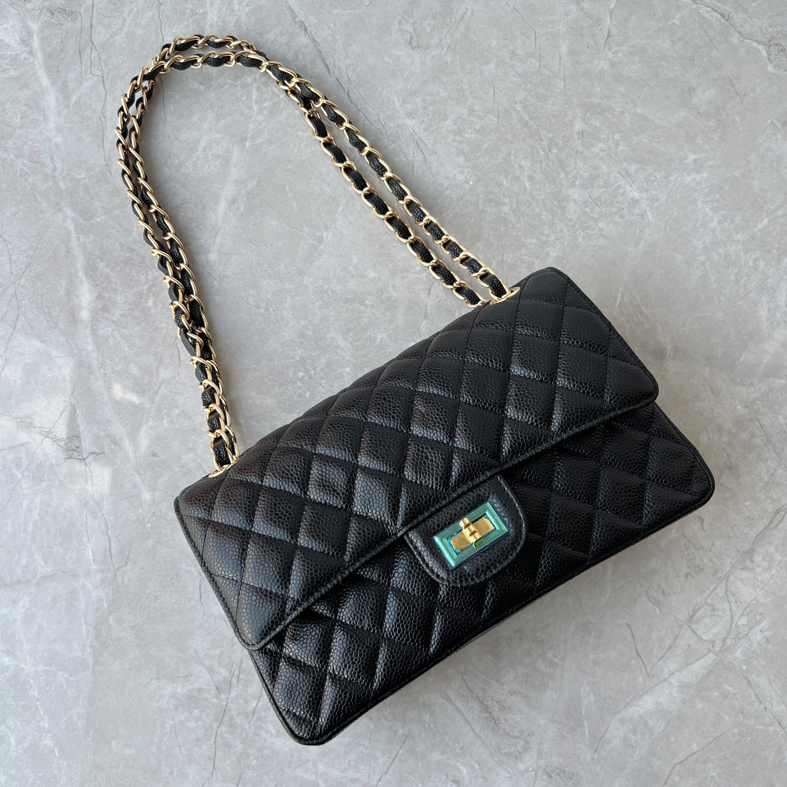 鱼子酱头层牛皮高级质感小香风菱格链条包真皮时尚百搭单肩斜跨包