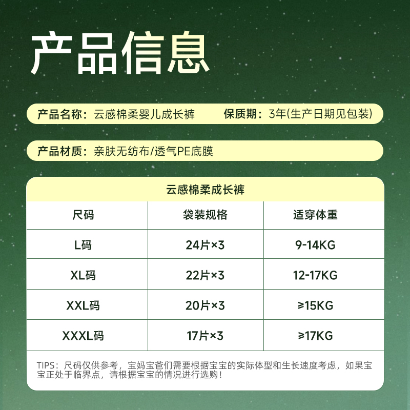 爹地宝贝云感棉柔拉拉裤L/XL/XXL/XXXL棉柔透气婴儿尿不湿尿裤