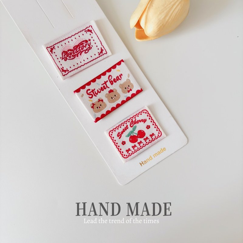 现货韩系布标手工diy小熊小猫樱桃苹果娃衣发饰围巾包包可缝织唛