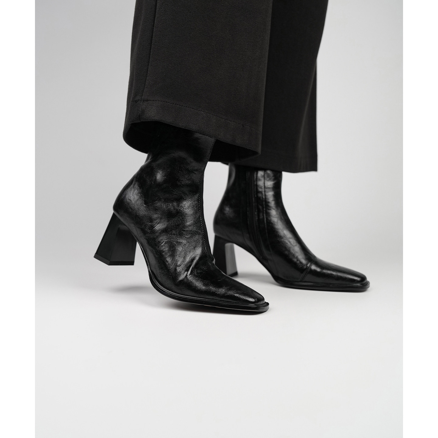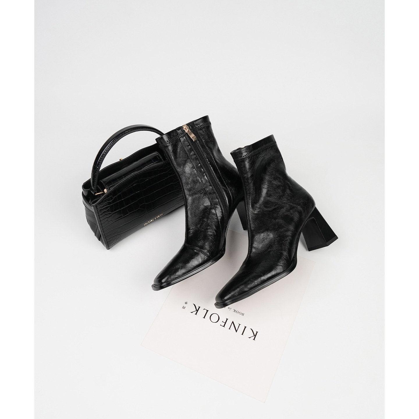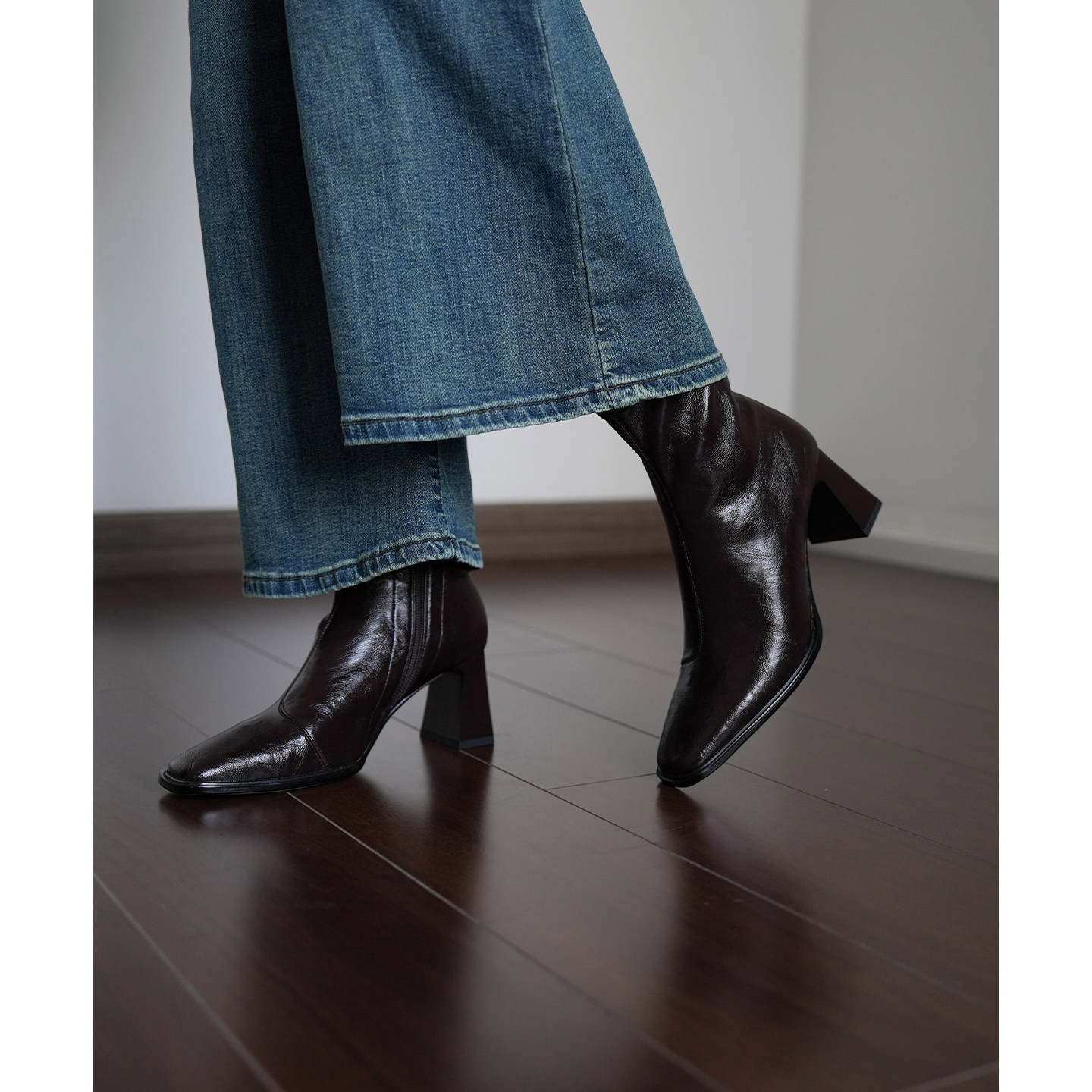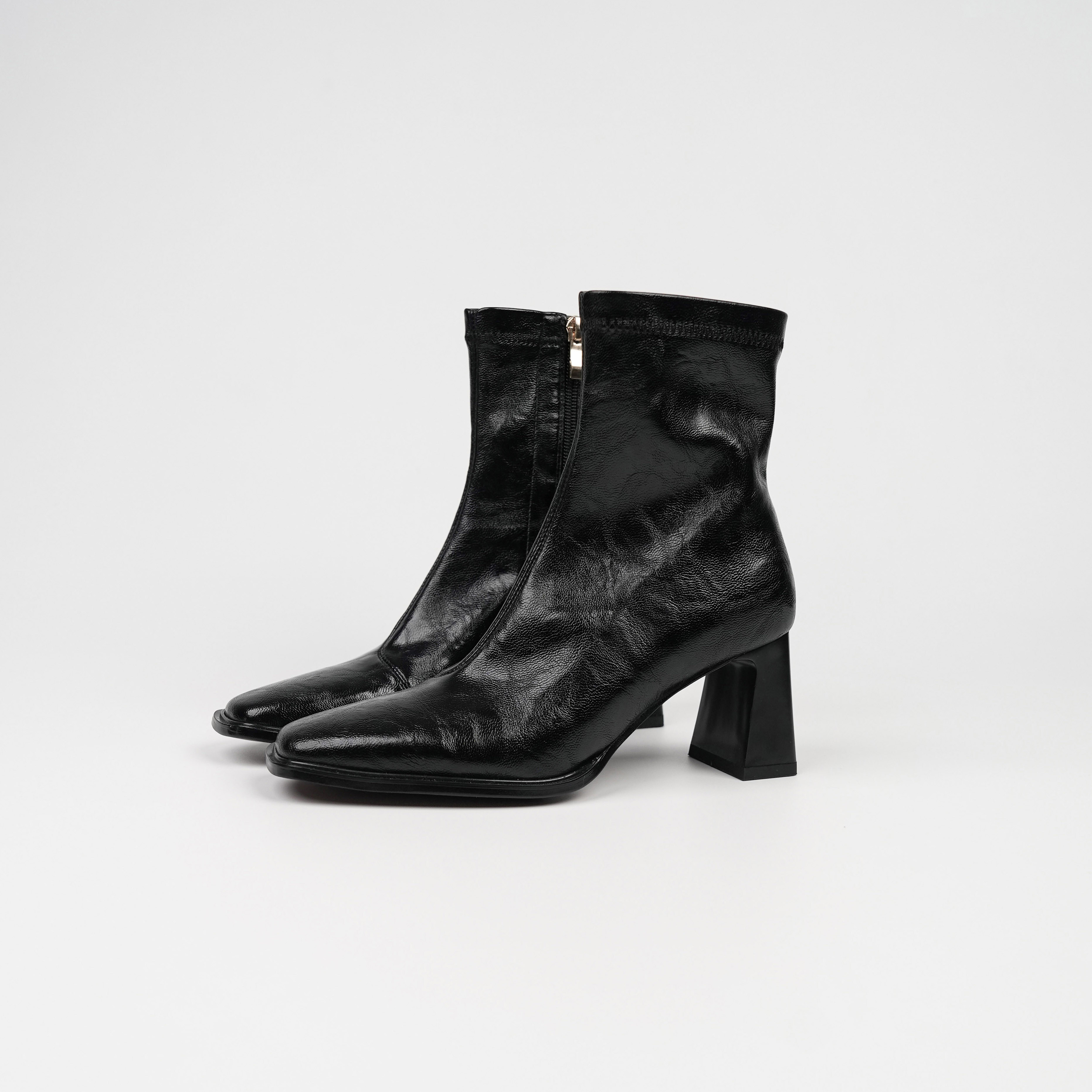 Fermina 秋季新款方头瘦瘦靴女粗跟简约百搭显瘦高跟短靴通勤女靴