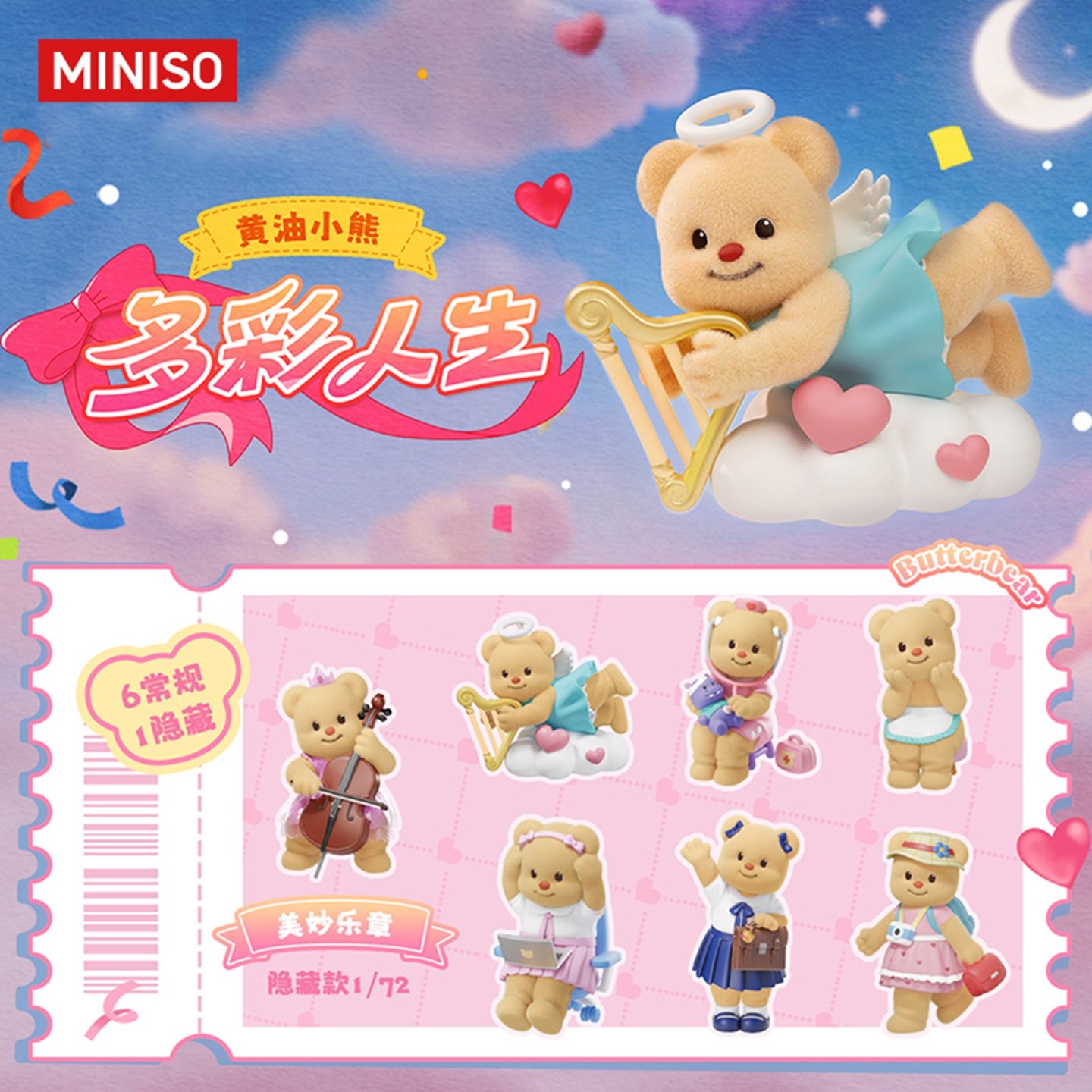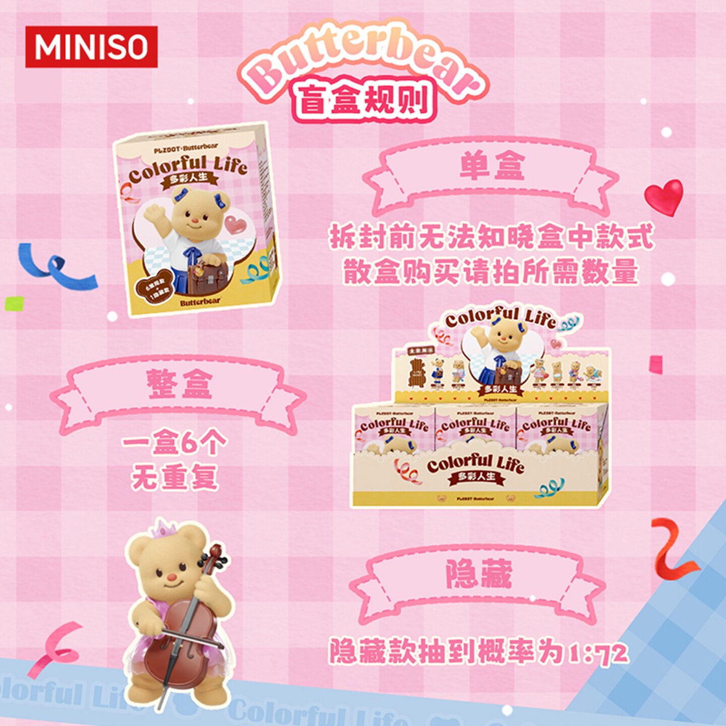 MINISO名创优品黄油小熊“多彩人生”系列盲盒公仔可爱正品礼物
