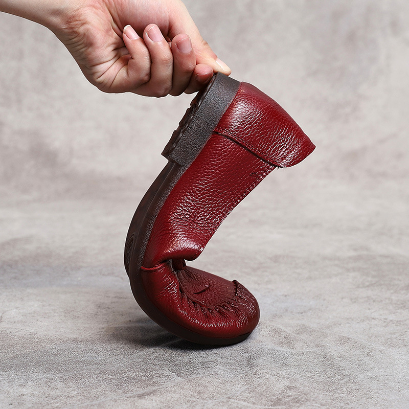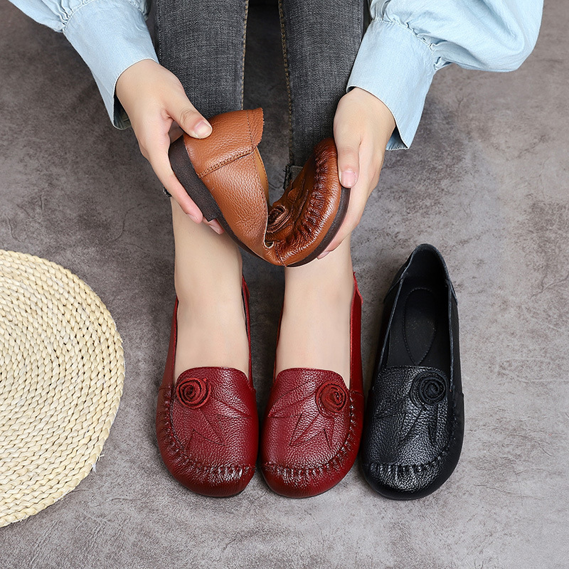 春秋民族风妈妈单鞋真皮软底平跟中老年女鞋手工复古防滑奶奶皮鞋