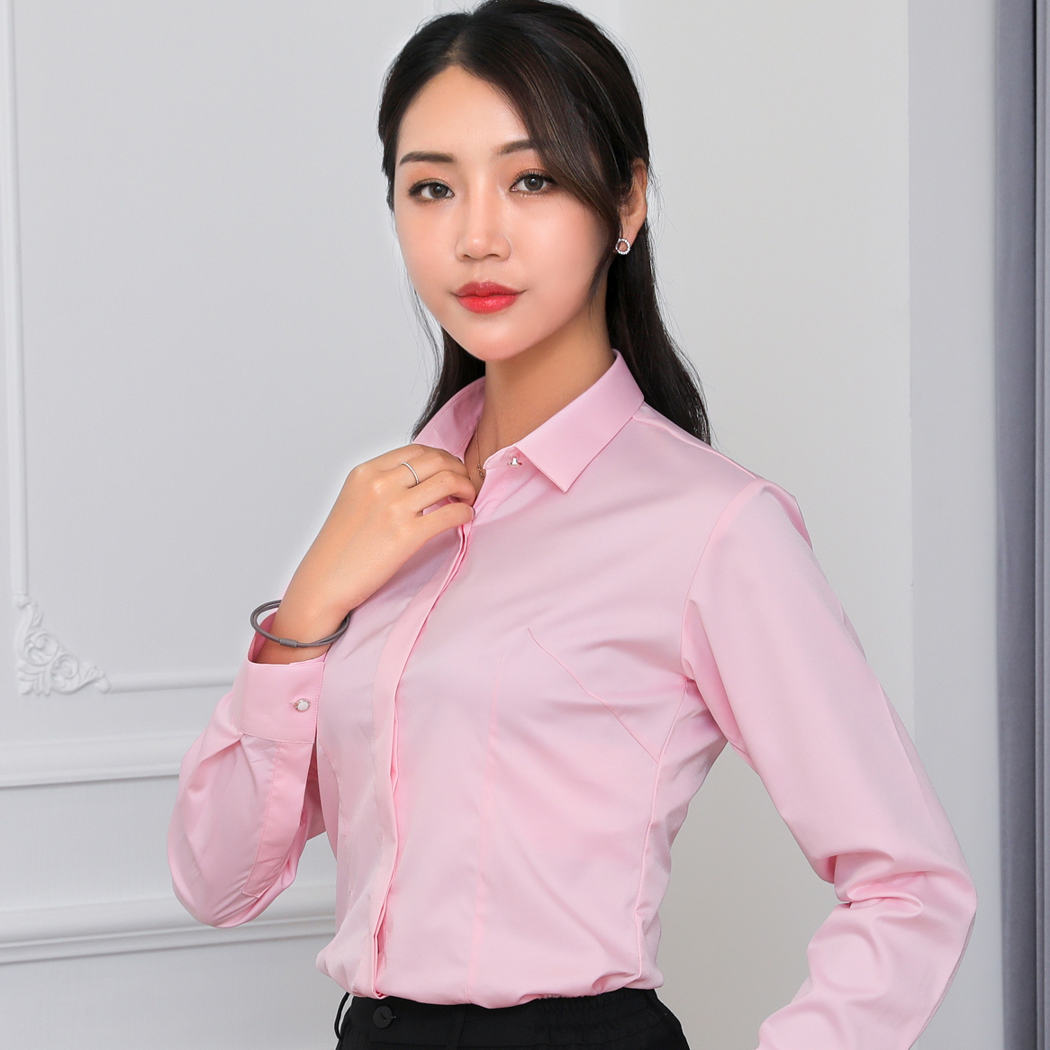 长袖棉职业装粉色工作服衬衫加绒
