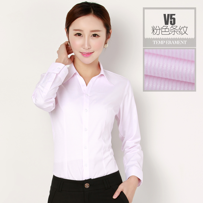 职业装白衬衫条纹工作服上班长袖女加绒保暖正装工装粉色衬衣大码