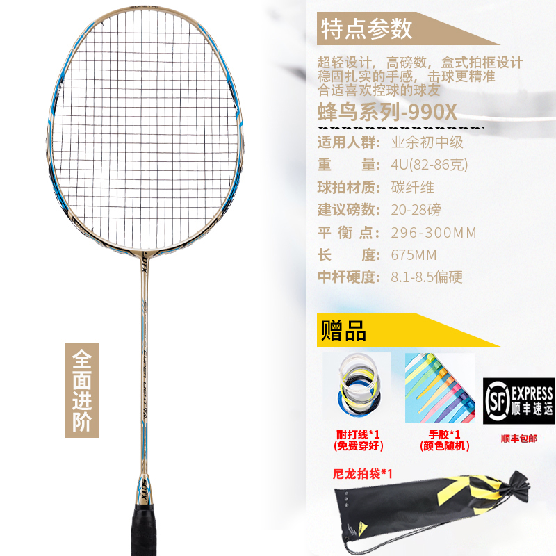 SOTX索牌羽毛球拍索德士蜂鸟990X正品单拍全碳素攻防兼备型羽拍
