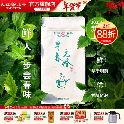 天福茗茶 毛峰茶叶 2025春茶新茶绿茶实惠装150g袋装