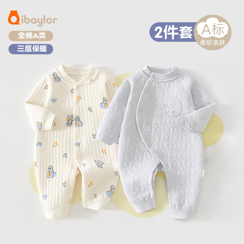 2件初生婴儿纯棉加厚连体衣